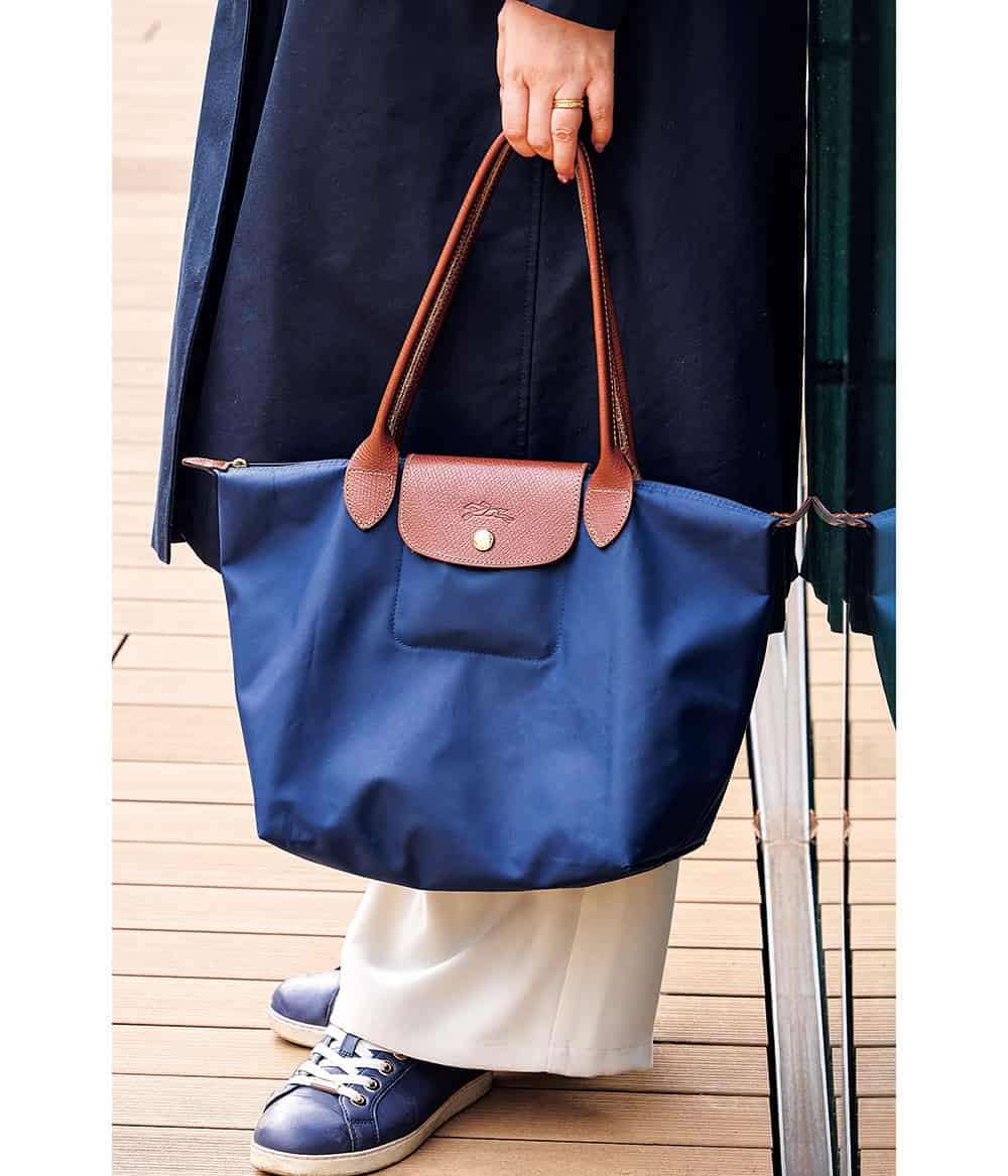 超満員電車での通勤がスタートし、傷の心配がないロンシャンの〝ル プリーアジュ〟が活躍。きちんと感はキープしつつ大容量&軽量なのが◎