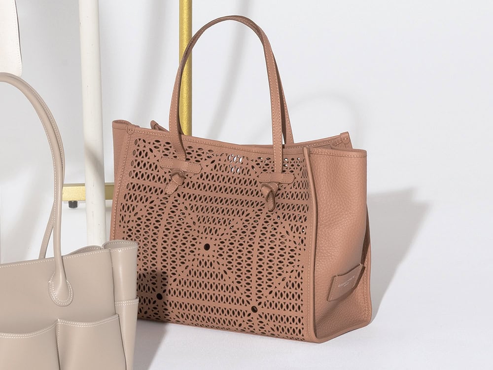 レーザーカットバッグ「MARCELLA」〈H30×W38×D15㎝〉¥97,900(ジャンニ キアリーニ/ジャンニ キアリーニ 銀座店)