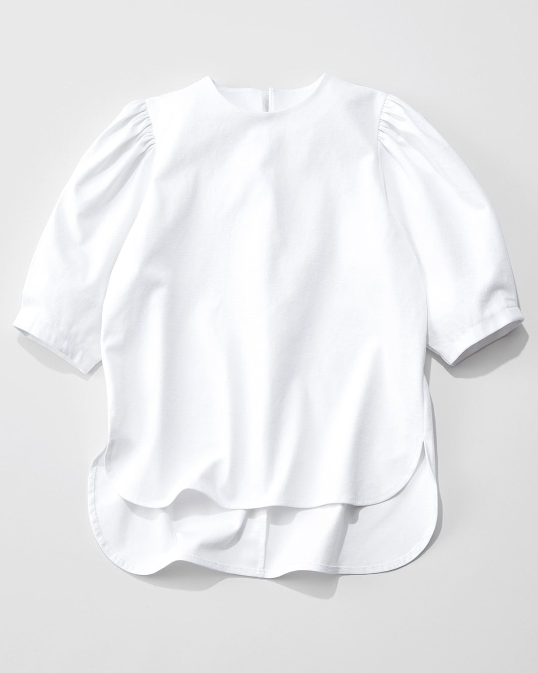 柔らかいコットンレーヨン素材を使用し、シワになりにくい。首元のボタンを開ければ、コーデに抜け感が加わり、ボリューム袖で手首をほっそり見せる効果も。自宅でのイージーケアも嬉しい。