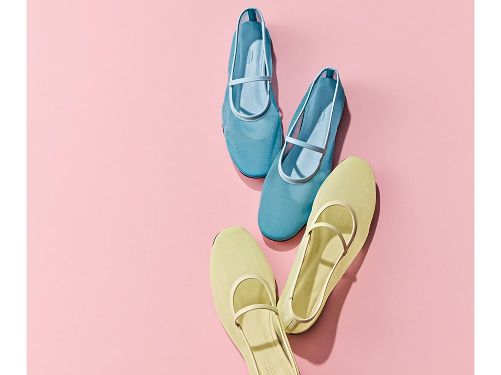 モノトーン派も、足元なら春らしいパステルカラーも照れずに挑戦できそう♡いつものシンプルコーデも見違えます。メッシュは涼しく足ざわりもソフト。フラットシューズ〈H1㎝〉(ともにペリーコ サニー/アマン)