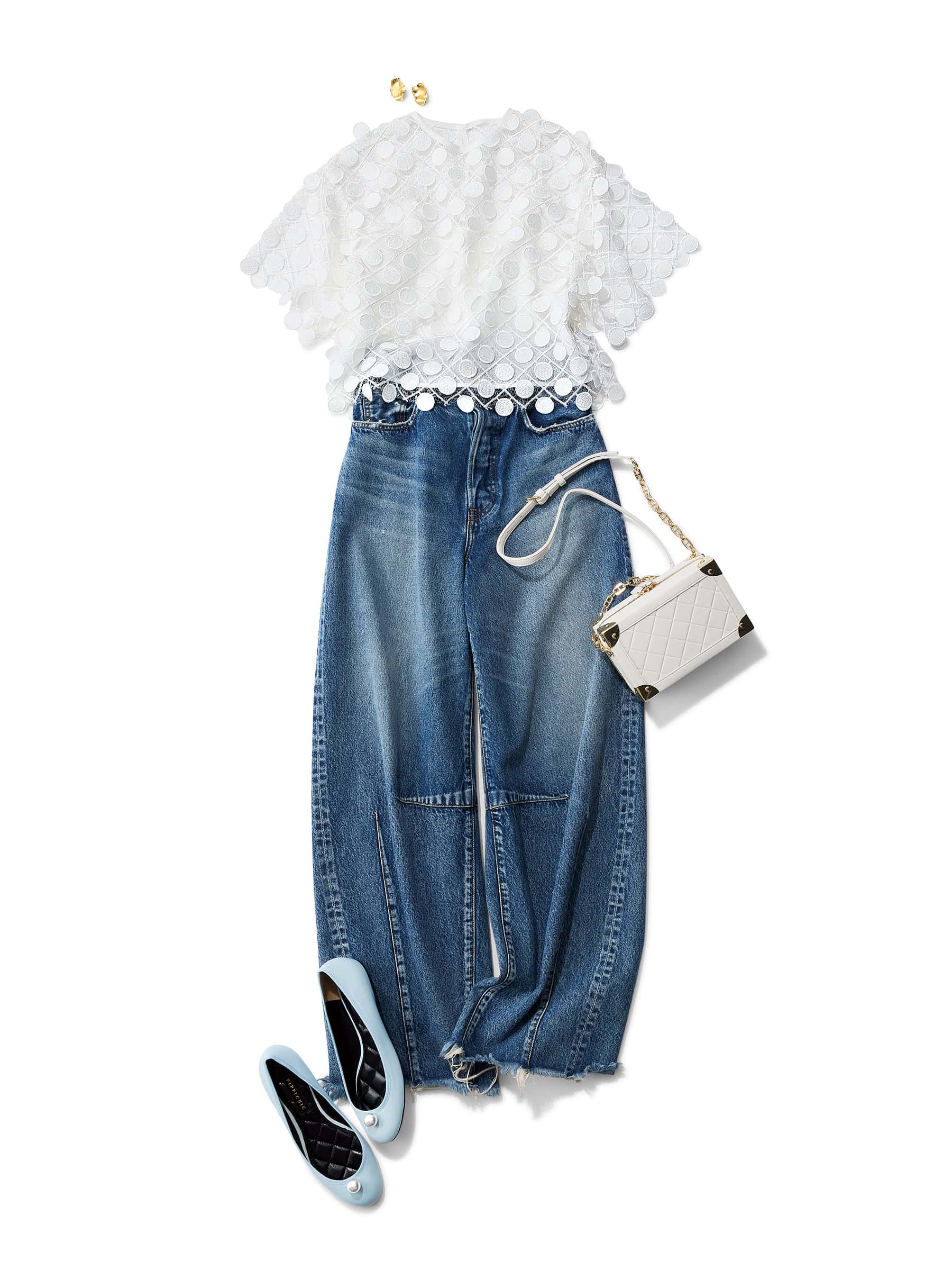 デニム×ぺたんこは甘めトップスで“可愛げ”シフト