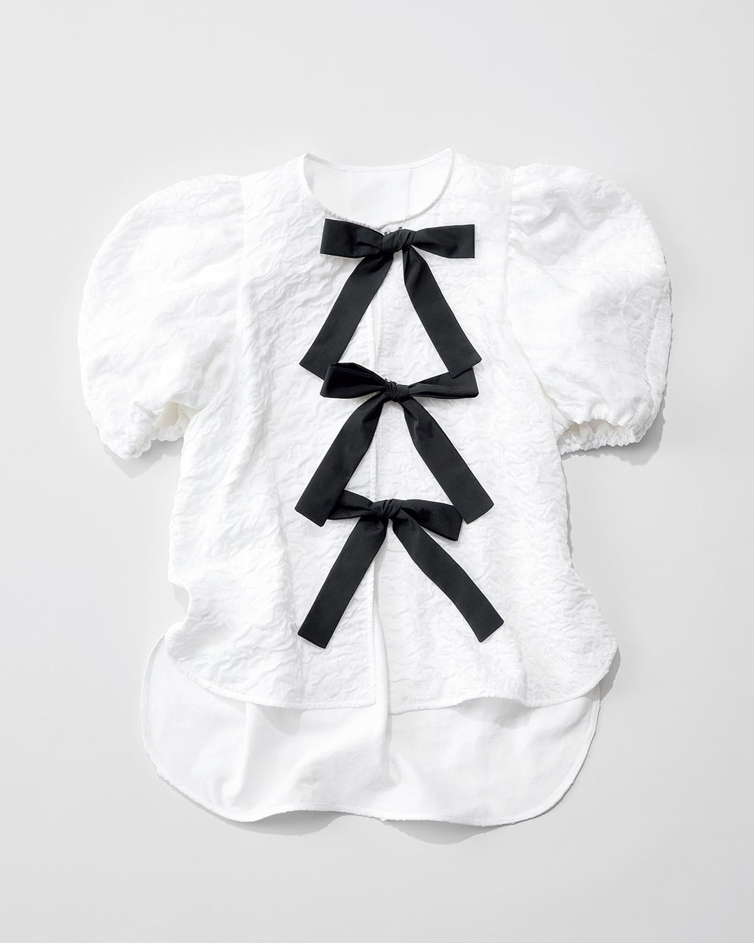 ③取り外せるのが嬉しい!1枚で華やぐ「リボンブラウス」