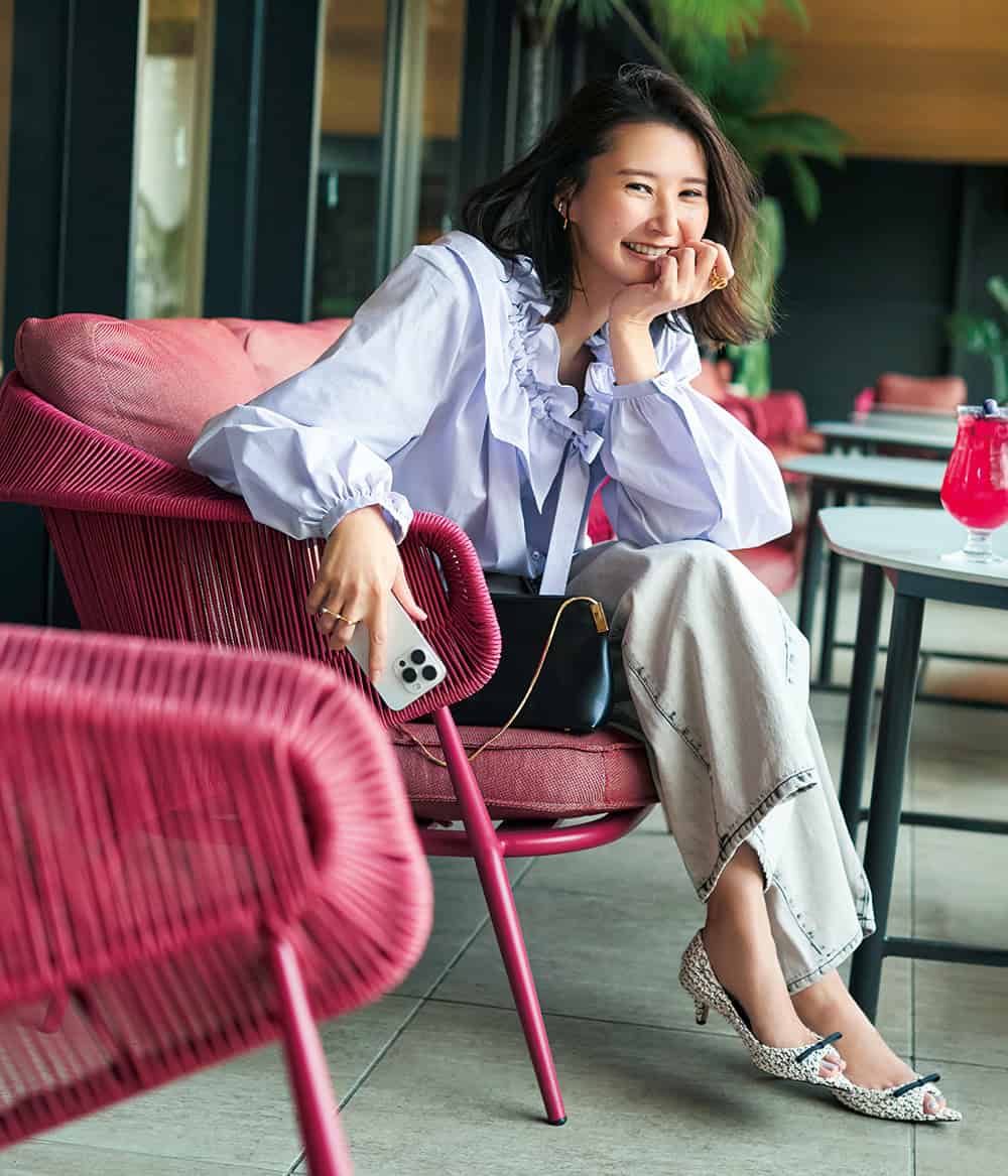 いつものデニムで駆け抜ける1日も、足元とトップスを甘めに盛って軽やかにオシャレの刷新を!
