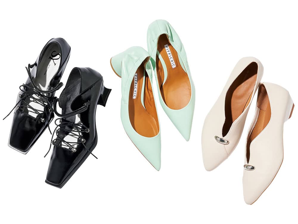 (右から)パンプス¥25,300(オゥ バニスター/アバハウスインターナショナル オンラインストア)パンプス¥35,200(PIPPICHIC/ベイジュ)レースアップパンプス¥14,960(シー ユナイテッドアローズ/ユナイテッドアローズ カスタマーサービスデスク)