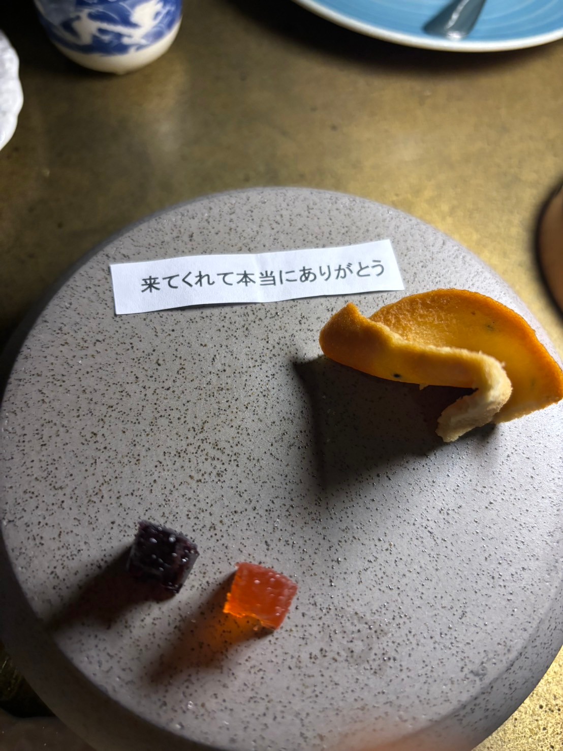 最後の締めとして出してくださったフォーチュンクッキーを開けてみると…そこには日本語で「来てくれて本当にありがとう」のメッセージが。これにはやられました。こんなに楽しい時間を料理で演出しているのに、さらに日本語でメッセージを伝えてくださるとは…。シェフの優しい人柄と徹底したホスピタリティに私は初めて感動してレストランで泣きました。本当にみなさんに体験していただきたい!