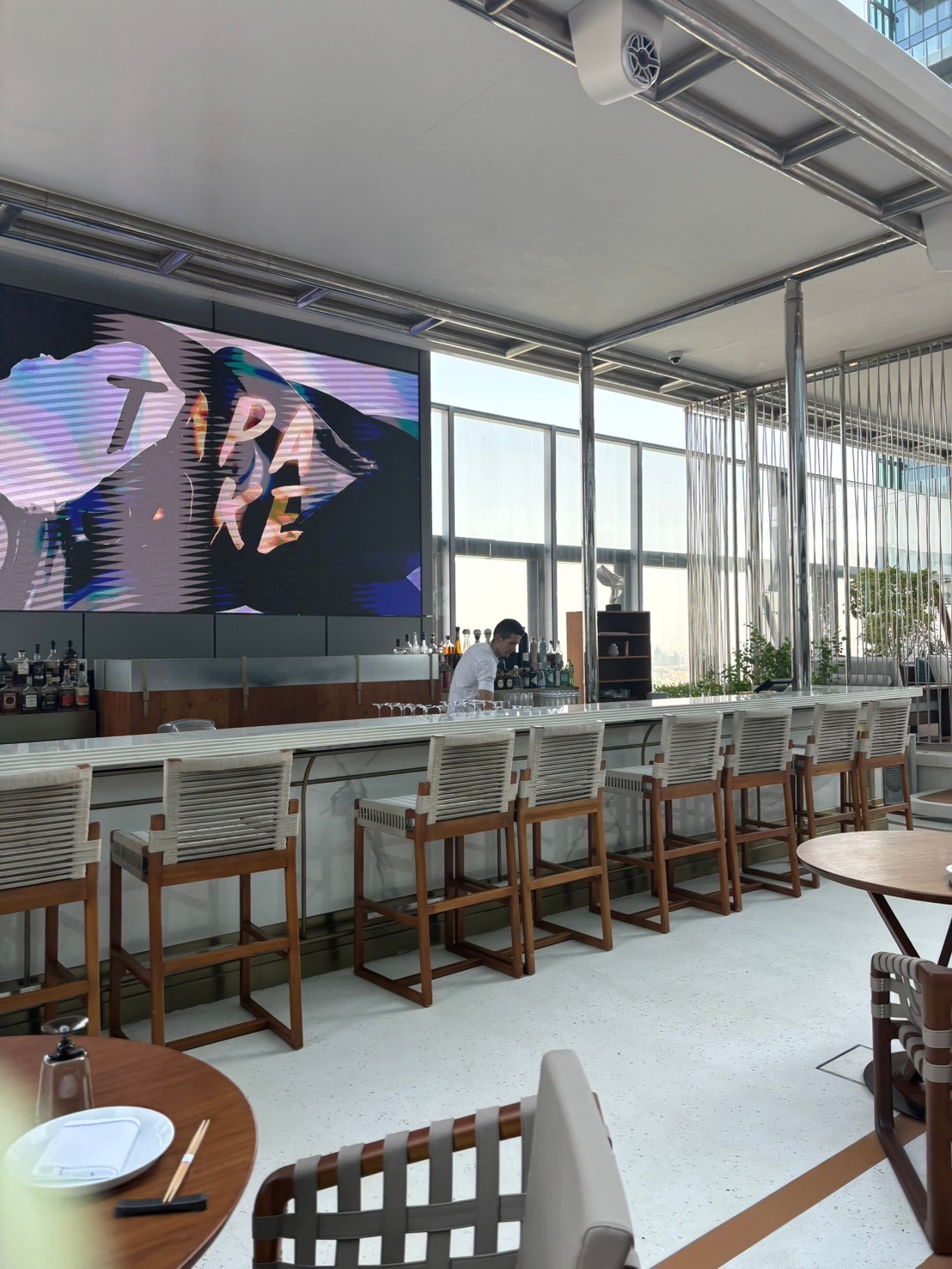 前回の記事でご紹介した「ザ・リンク」の屋上フロアある、世界最長のインフィニティプールが併設されたレストラン&プールクラブ「tapasake(タパサケ)」でランチ。こちらは、日本風のペルー料理という斬新なフュージョン料理です。和牛、寿司や刺身、わさびなど日本人には馴染み深いメニューや食材が使われていて、ドバイの地でどんな味わいになっているのかがとても楽しみになるラインナップ。