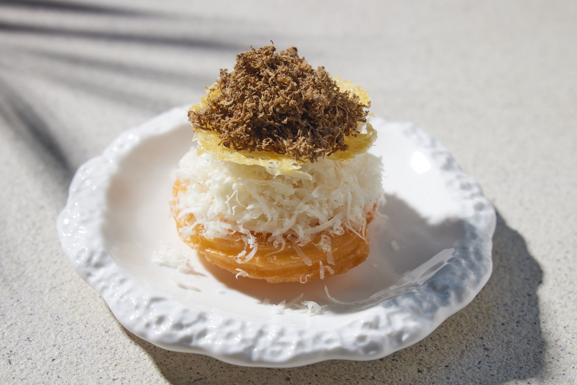 記憶に残しておきたいレストランと言えばもう1軒。カナダで生まれ、シカゴで育ち、現在はドバイを拠点に活躍する中国系カナダ人ケルヴィン・チェンさんの「レストランJun’s」。チェンさんの料理スタイルは、中国をルーツとし、北米での幼少期、そしてフランスでの修行からインスピレーションを得て生み出された、まさに彼の記憶の中の感性豊かなメニュー。そこに地元の農場から仕入れた新鮮な食材が絶妙なバランスで組み合わされています。