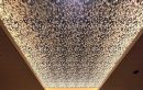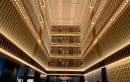 エントランスを入った瞬間、息を飲むほど美しい格子状の吹き抜けのロビーが出現。京都の伝統工芸の織物をイメージしたデザインが5階まで張り巡らされた、圧巻の眺めです。フロントの前には伊達冠石(だてかんむりいし)という、宮城県でしか採れない貴重な石が鎮座し、こちらも力強い存在感を放っています。