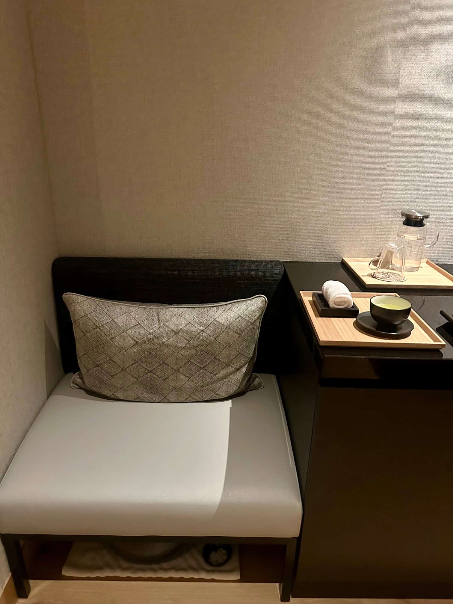 この日はオールハンドによるディープティシュー(70分 ¥22,000)を予約。ソファーに座りながら京都産の天然塩を用いた10分間のフットバスからスタートします。