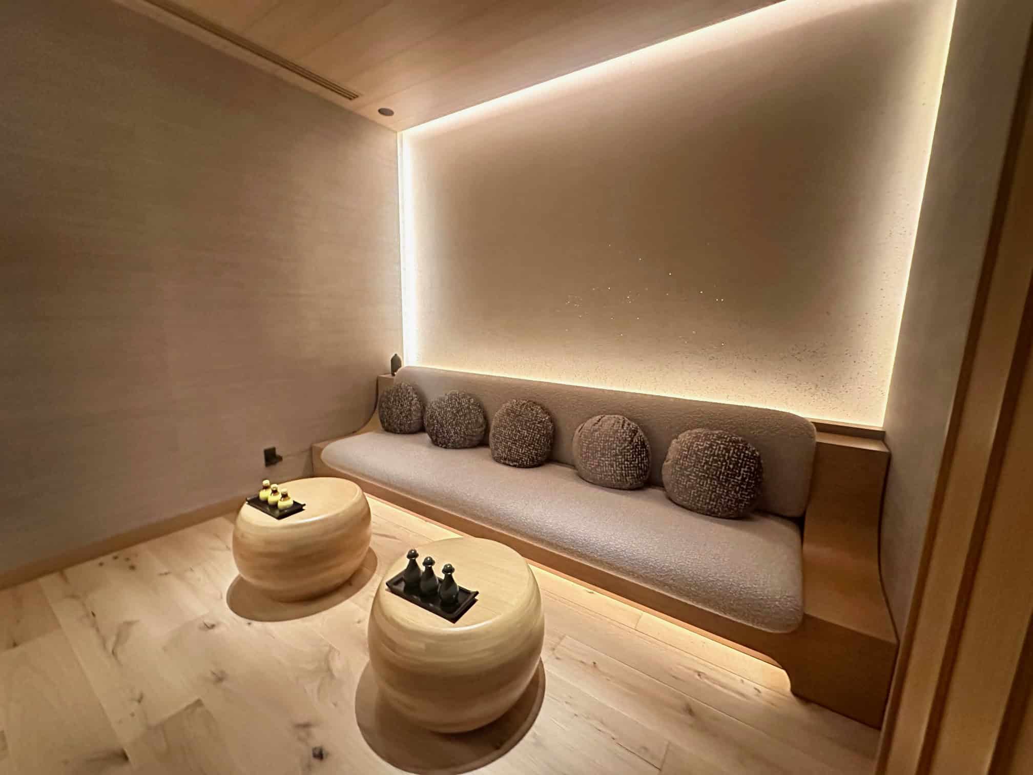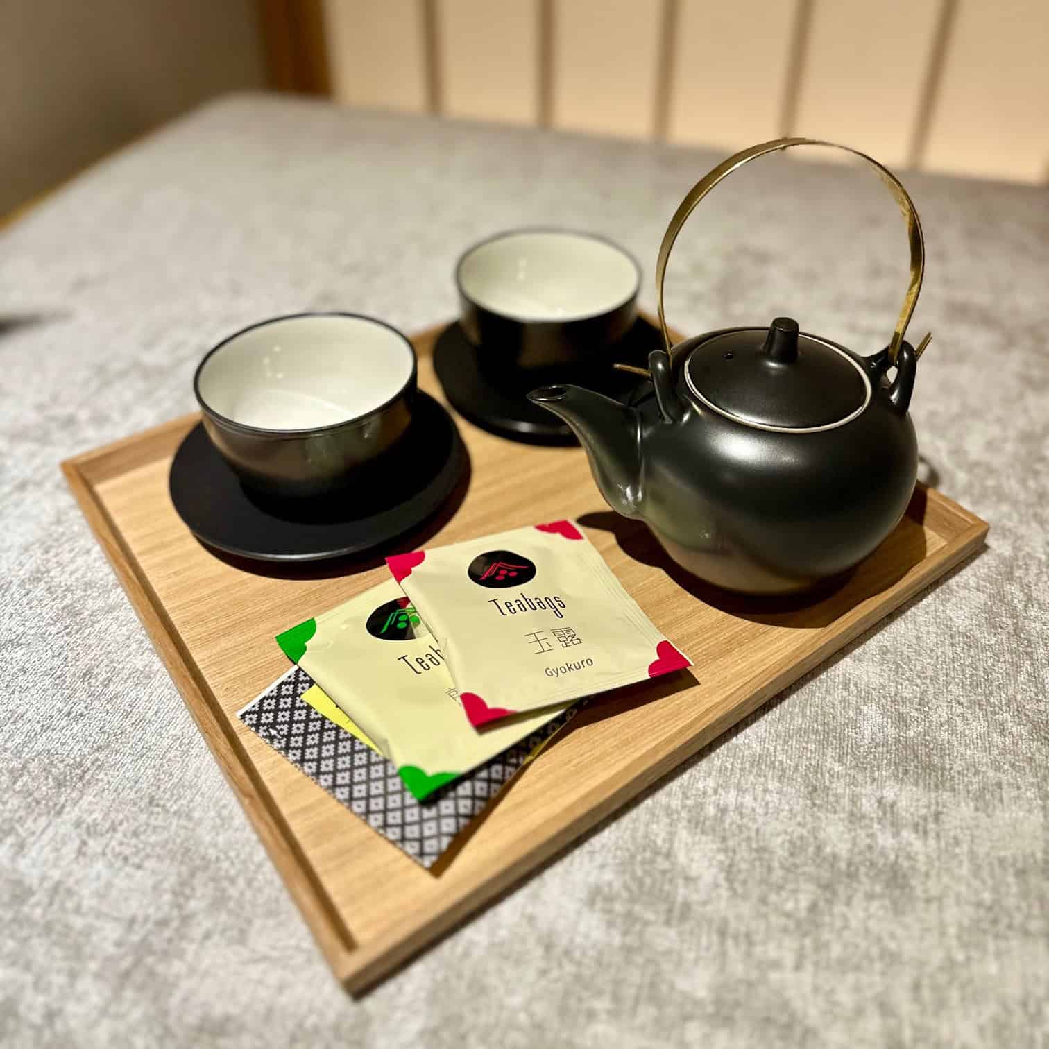 施術が終わった後に案内されるリラックスルーム。余韻に浸りながらのんびりとお茶と小菓子をいただけます。