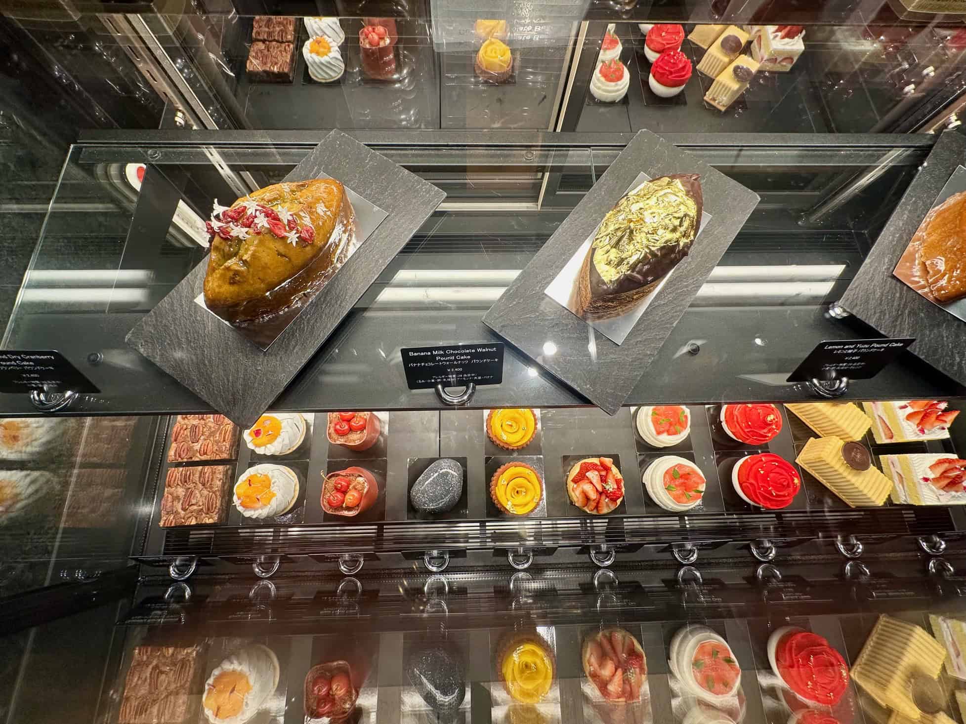 ラティスラウンジの脇にはスイーツのショーケースがあり、宝石のように美しいスイーツの数々が♡ テイクアウトもできます。