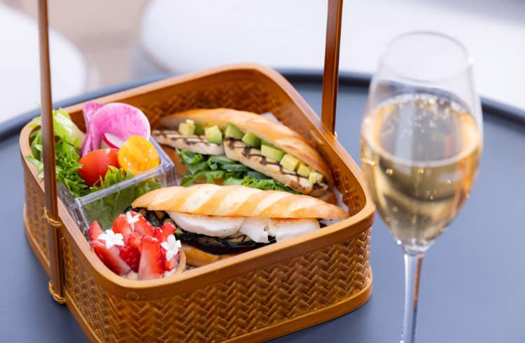 大空の下でバスケットスタイルの食事を楽しめるバスケットプランも新登場。お一人様から気軽に楽しめる「ネストバスケット1」をはじめ、シャルキュトリーやフィンガーサンドなワインにピッタリのメニューがお楽しみいただける「ネストバスケット2」、キャビア、ローストビーフ、和牛スライダーなどが楽しめる「ネストバスケット3」の3種類から選べます。12時からオープンしているので、ラグジュアリーなピクニック気分で食事を楽しむのも素敵です。*季節営業のため営業時間は公式サイトをご確認ください。