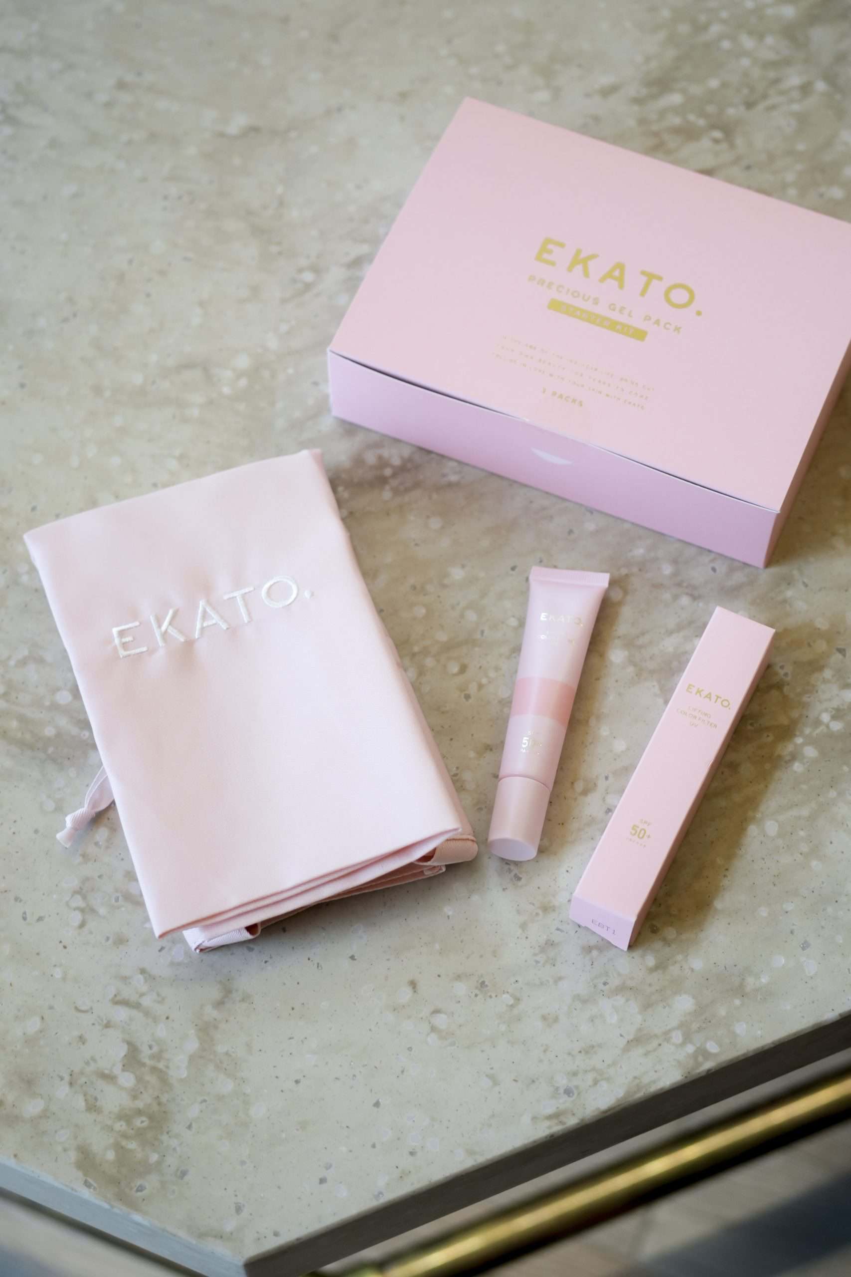 そしてさらに、参加者全員へのお土産には、STORY本誌でも掲載多数、40代注目のスキンケアブランド、EKATOから「プレシャスジェルパック スターターキット」(①剤〔3包]、2剤〔3包])カップ&スパチュラ入りの3日間お試しキット(¥5,280)と「リフティングカラーフィルターUV(01ピュアピンク)」(30ℊ/¥4,180)のセット。