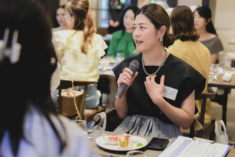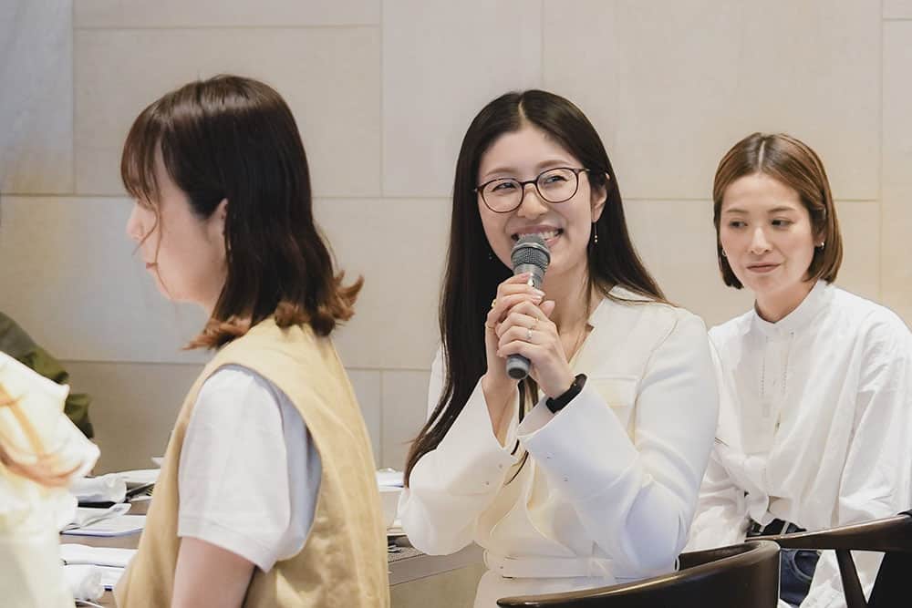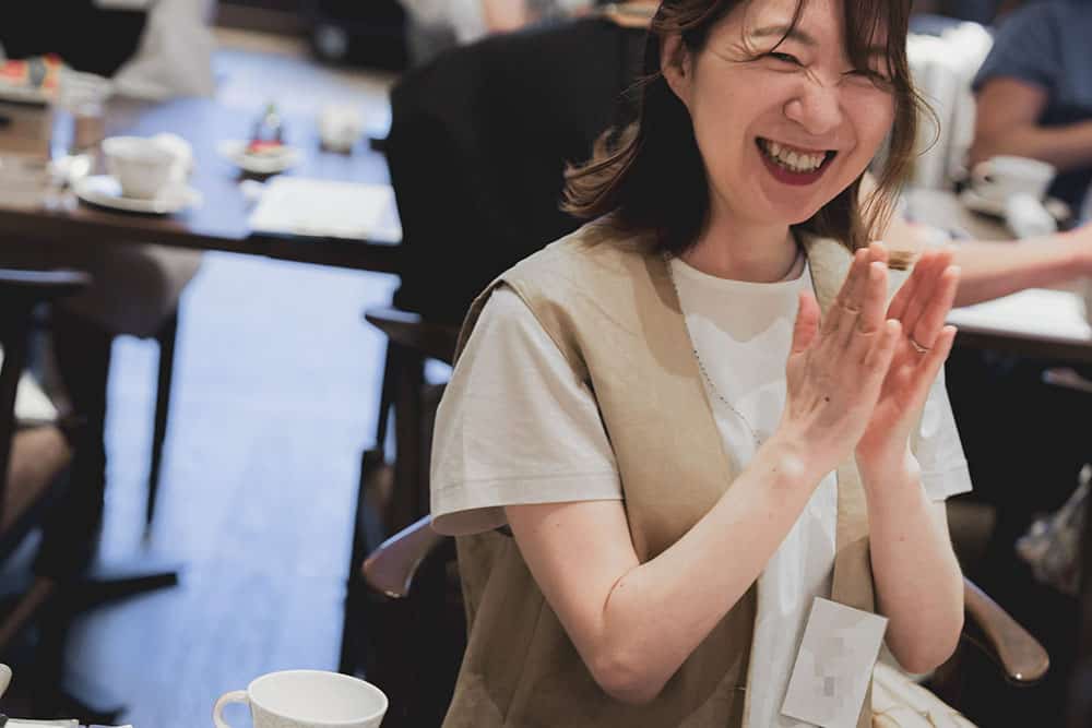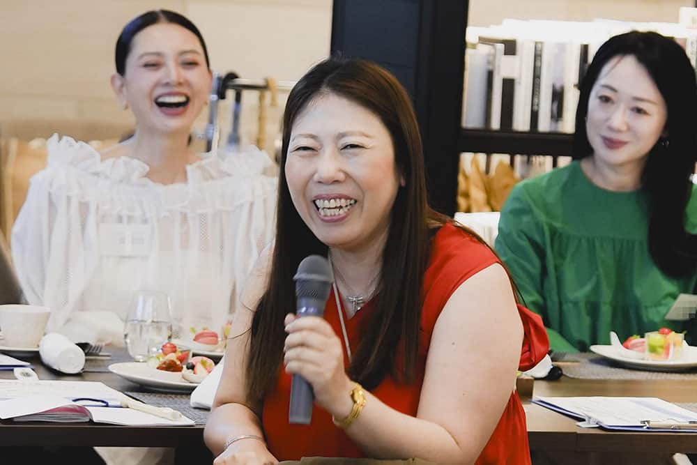 子育てが落ち着き始めた40代の新たなチャレンジ法や、まだまだ母親業で手一杯だけどオシャレもしたくて、何から始めたらいいかわからない。子どもが大きくなり夫婦二人の時間が増えてきたが、いざ久しぶりに向き合って二人の食事でなにを話せばいいの? 改めて夫婦のカタチをデザインする方法は? など熱のこもった質問がたくさん飛び交いました。この春に子どもが自宅を巣立ったライター小仲からも「その状況、わかります」と実感のこもった言葉が。参加者との距離を縮めました。