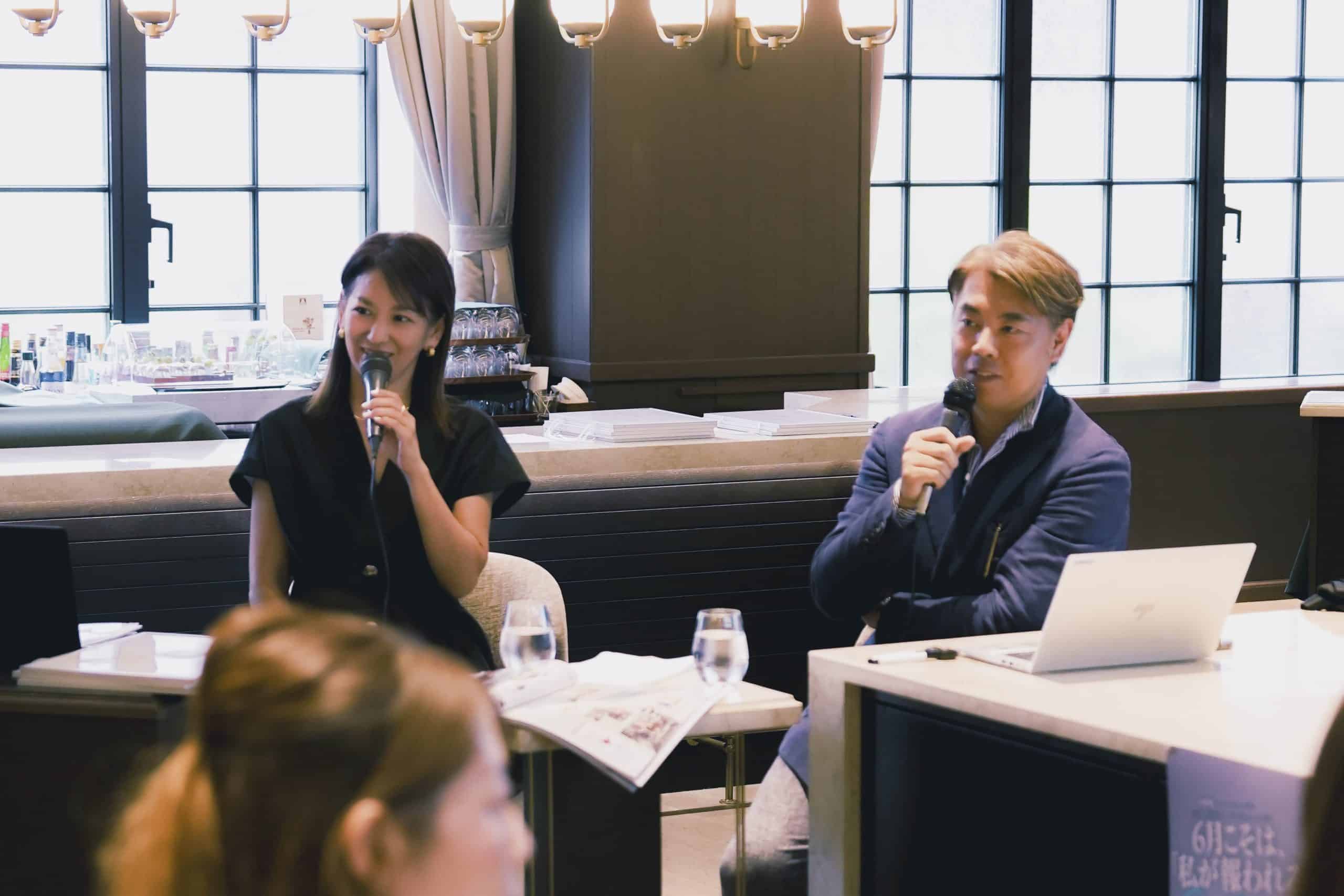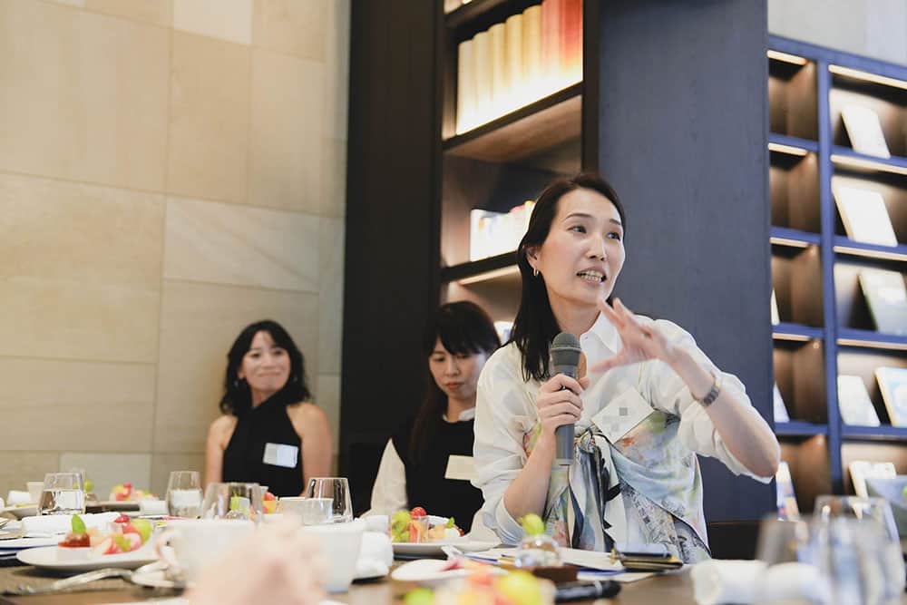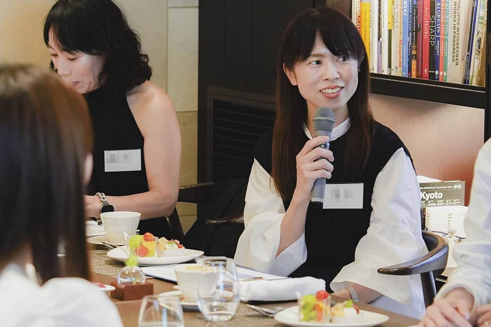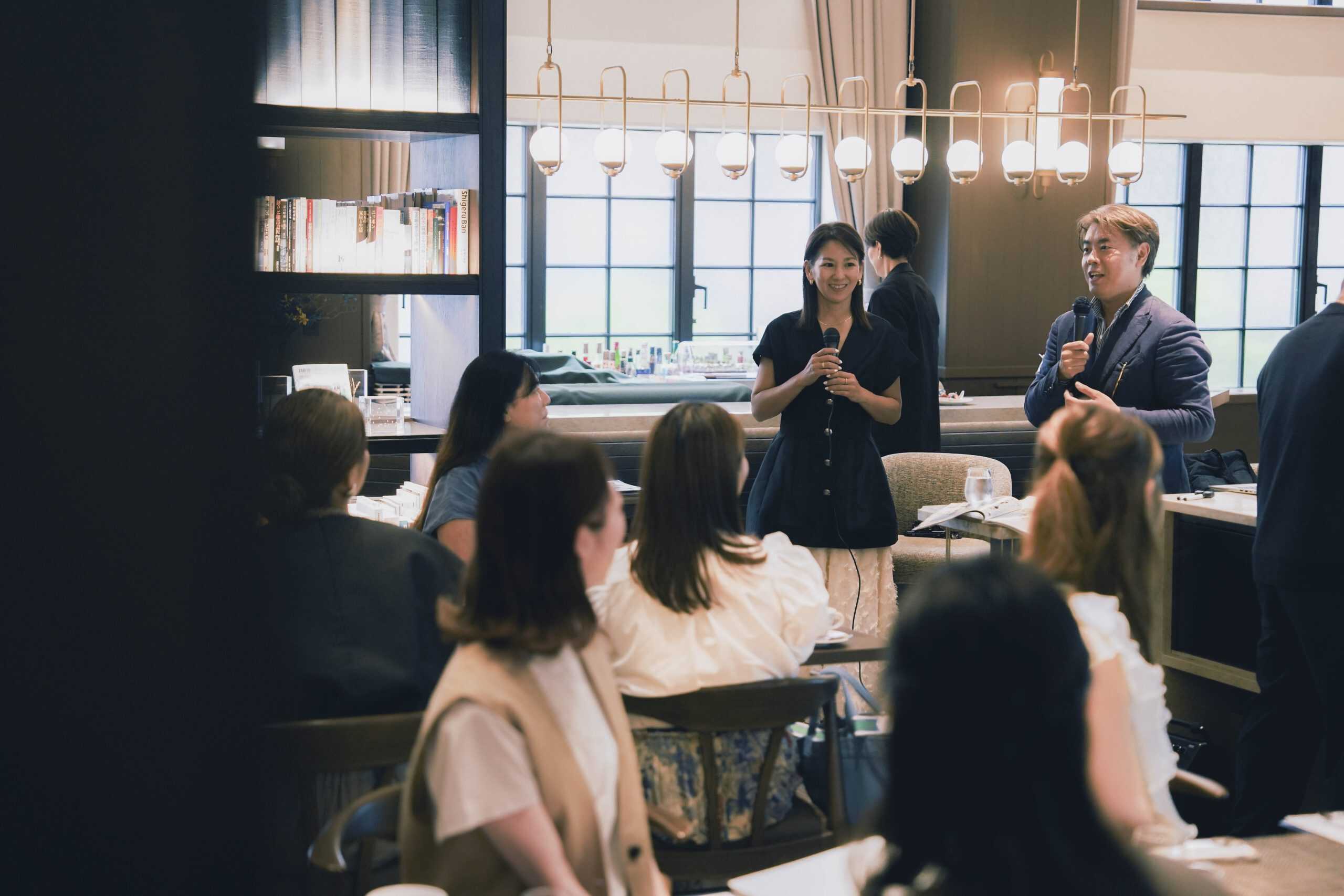 子育てが落ち着き始めた40代の新たなチャレンジ法や、まだまだ母親業で手一杯だけどオシャレもしたくて、何から始めたらいいかわからない。子どもが大きくなり夫婦二人の時間が増えてきたが、いざ久しぶりに向き合って二人の食事でなにを話せばいいの? 改めて夫婦のカタチをデザインする方法は? など熱のこもった質問がたくさん飛び交いました。この春に子どもが自宅を巣立ったライター小仲からも「その状況、わかります」と実感のこもった言葉が。参加者との距離を縮めました。