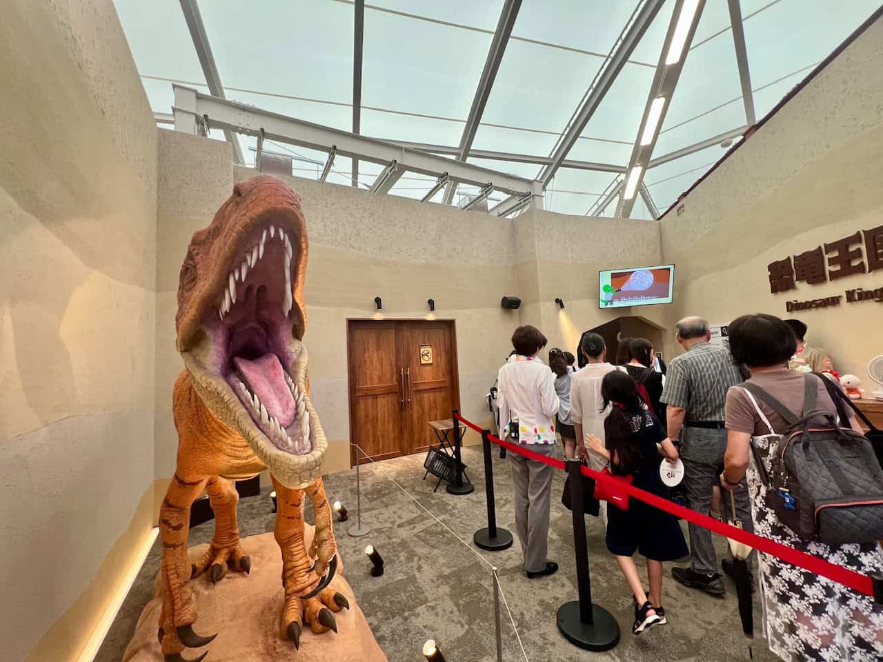 お次は、お子さん連れの方にもオススメな「福井県ゾーン」の「恐竜王国福井」です。懐中電灯型のデバイスを用いた探索展示や四面を囲む映像で福井県の魅力を深堀していくシアター体感ができます。