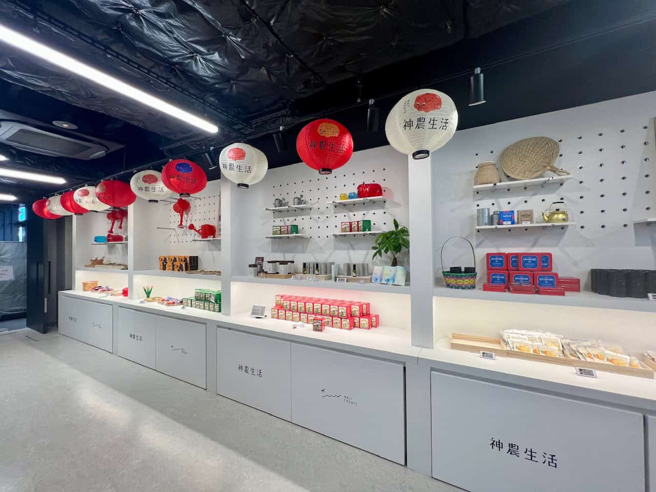 「TECH WORLD」の最後のお楽しみは、ショップエリアです。台湾のお土産やグルメが楽しめます。ショップでは、台湾好きにはたまらない、ライフスタイルブランドの「神農生活(しんのうせいかつ)」が手がけるグッズを販売。