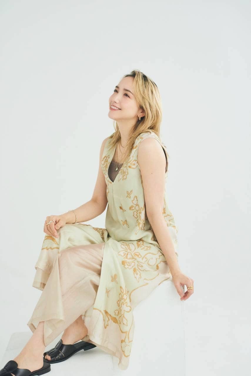 ワンピース¥49,500(オットダム/パサージュ デュ ストックマン 恵比寿店)トップス¥9,900<ルージュ・ヴィフ ラクレ>パンツ¥9,900<ノミネ>(ともにアバハウスインターナショナル オンラインストア)スクエアフープピアス¥26,400左手人差し指リング¥46,200右手人差し指リング¥30,800右手中指リング¥26,400ブレスレット¥35,200(すべてブランイリス/ブランイリス トーキョー)4連チェーンネックレス¥31,900<ミショー>グリーンストーンネックレス¥22,000<ムニール>(ともにハウス オブ ロータス)フラットサンダル¥78,100(ヘリュー/アルアバイル)