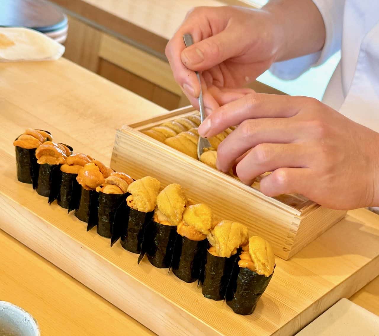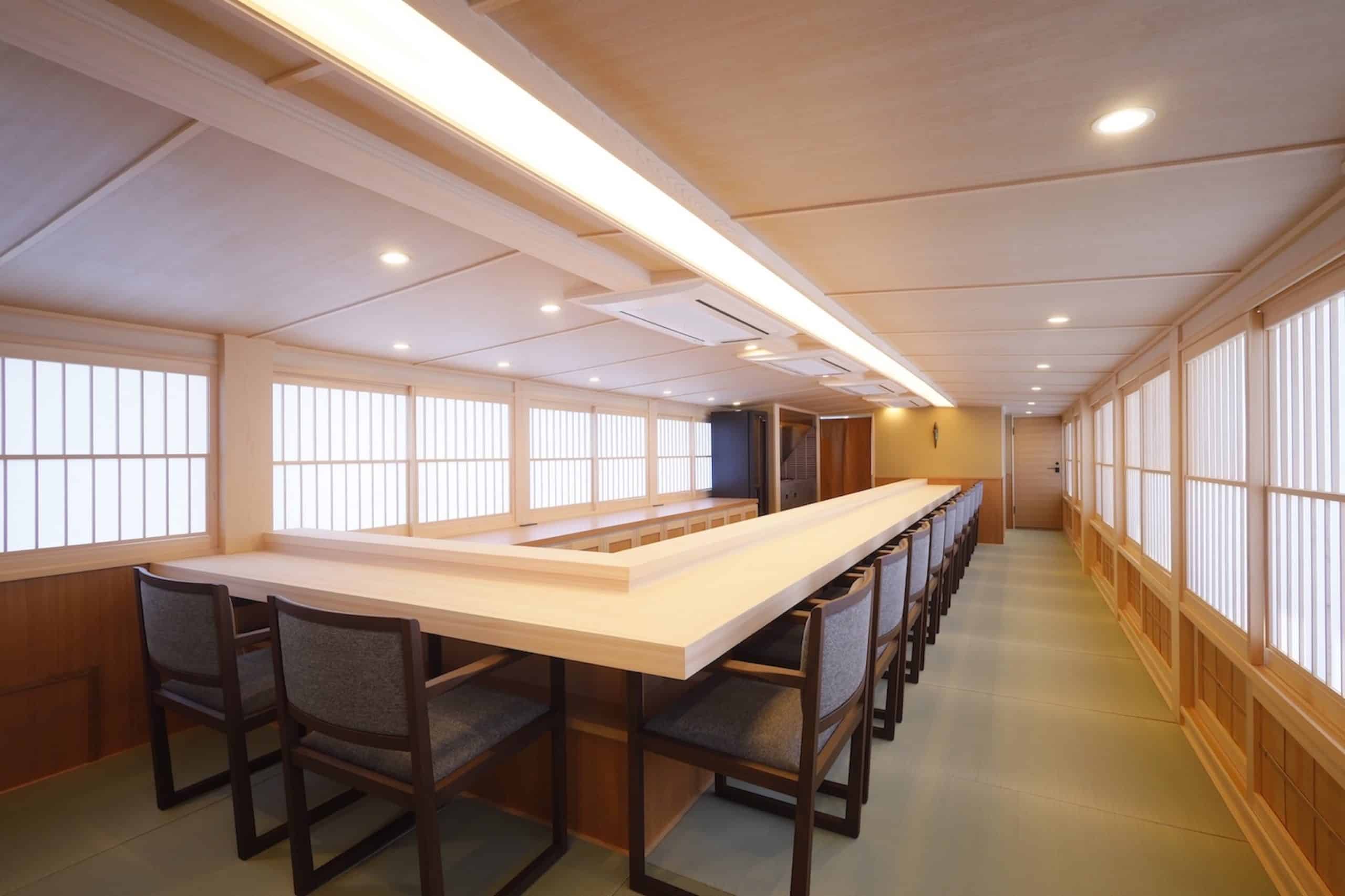 ミシュラン1つ星の銀座「鮨 むらやま」が監修した、情緒あふれる東京の風景とともに鮨を味わう屋形船「鮨 おりがみ」が誕生しました。江戸時代から続く屋形船文化と江戸前鮨を融合させた、わずか8席限定の特等席で、船内には香り高いひのきの無垢材を贅沢に使用した約10メートルのL字型カウンターを配置。目の前で繰り広げられる職人技を眺めながら、ここでしか味わえない特別なひとときを過ごせます。