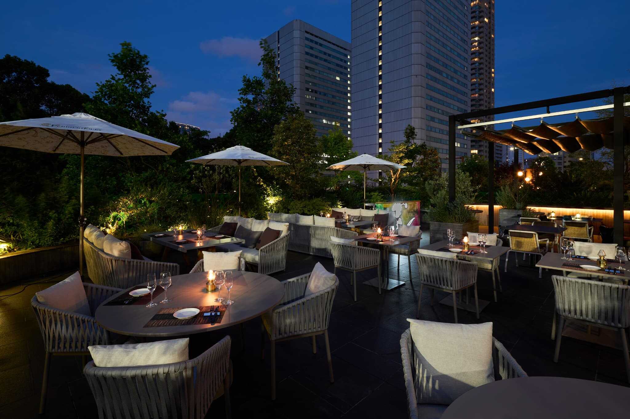 2024 年 3 月にオープンし、青山一丁目駅直結の好立地にある話題のレストラン「STELLAR WORKS Restaurant & Bar(ステラワークス レストラン アンド バー)」。テラスは、赤坂御所の緑豊かな景色を眺めることができる、まさに「都会のオアシス」。スペインの高級アウトドア家具KETTAL (ケタル)社のチェアーとテーブルを配し、居心地の良さを追求したテラス席では、ペットと一緒にお食事を楽しむこともできます。自然に囲まれ落ち着いた空間のなかで、季節と料理を五感で存分に味わってみてはいかがですか?