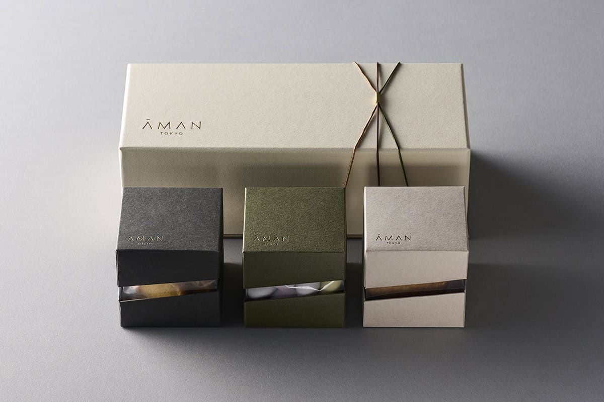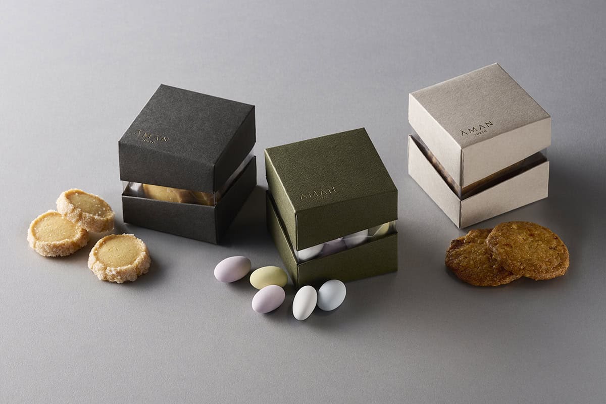 都会的なラグジュアリーと日本文化の繊細さを大切にする、アマン東京の世界観をそのままジュエリーボックスのような小箱に閉じ込めた、オリジナルギフト「KOBAKO」。パッケージを開けた瞬間、まるでアマン東京の静謐な空間に一歩足を踏み入れたかのような、特別な気持ちにさせてくれます。「ノワゼット」「オレンジのクッキー」のサクサクとした食感と香ばしさが魅力の焼き菓子や、ヨーロッパで“幸福の象徴”とされるお祝い菓子「ドラジェ」が入った特別な3個セット。ひとつひとつに丁寧なこだわりが光ります。その美しさと味わいに惹かれ、「これは自分用にも欲しい…!」とリピートする人が続出するのも納得。手土産として贈りたくなるのはもちろん、一箱そっと自分のものにしてしまいたくなる…そんな、とっておきのギフトです。