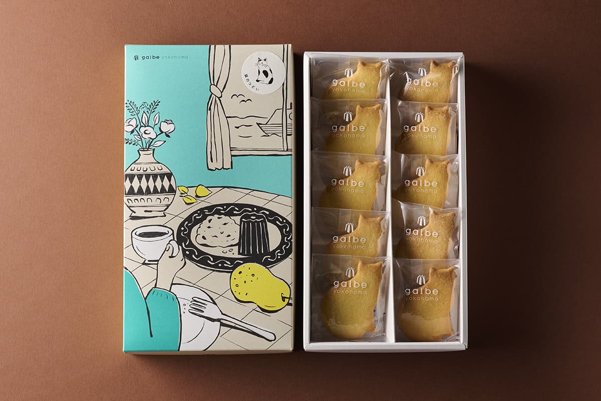 横浜・大倉山に本店があるカヌレと焼き菓子の専門店「galbe(ガルブ)」。「猫のつどい」は、横浜の港町に集まる猫たちをイメージした遊び心あふれるバターサブレです。たっぷり使ったバターがふんわり香り、程よい甘さとサクサクほろほろの食感がやみつきに。シンプルながら素材の味わいが引き立ち、焼き菓子専門店ならではのこだわりが感じられる一枚。港町横浜ならではの、海を眺めながら楽しむティータイムをイメージした、ブルーのパッケージも◎。横浜らしさとおしゃれ感、どちらも欲張れるセンスのよさが光ります。猫好きはもちろん、個包装で大人数に配りやすいのも嬉しいポイント。「かわいい」と思わず口にしてしまう、見た目も味も楽しめる手土産です。