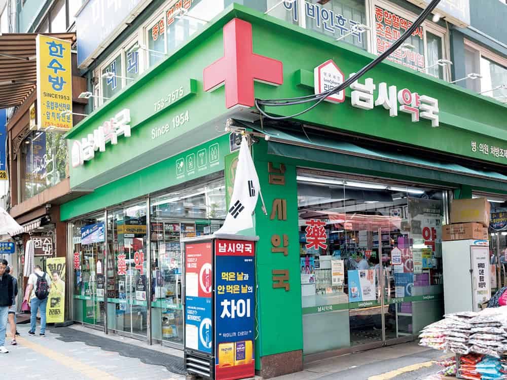 韓国コスメ好きに大人気!価格重視のローカル薬局。同じ薬なのに実は薬局によって値段がぜんぜん違う韓国。ここはお得に買えるので、南大門市場へ買物ついでにぜひ覗いてみて。