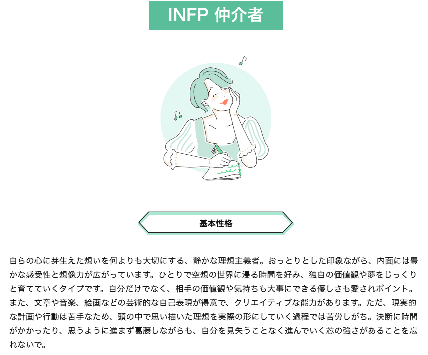 <基本性格、恋愛傾向、向いている職業、長所・短所、他のタイプとの相性>