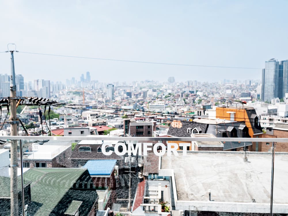韓国の今と昔が混在した市街地を屋上から一望。東大門の北側のエリア「昌信洞(チャンシンドン)」。高台なので、南山タワー、漢陽都城の城壁、DDPまで一望できて圧巻です!