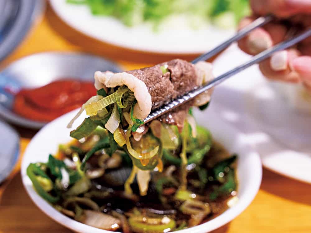 50年以上地元に愛される薄切りチャドルバギがツボ。さっぱりしたお肉が食べたいときは絶対ここ!ネギがたっぷり入ったポン酢を包んでいただきます。テンジャンチゲも外せません!脂の甘みと旨みが凝縮したお肉をサッと焼いて食べる幸せ♡
