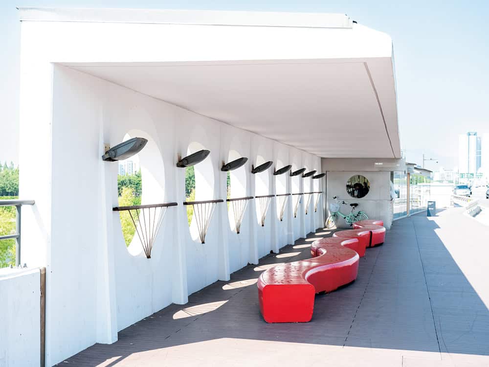 漢江(ハンガン)にかかる橋上のオシャレカフェ。ソウルの名所「漢江(ハンガン)」を眺めながらゆったりカフェタイム。堂山駅から徒歩10分ほどの楊花(ヤンファ)大橋にあります。
