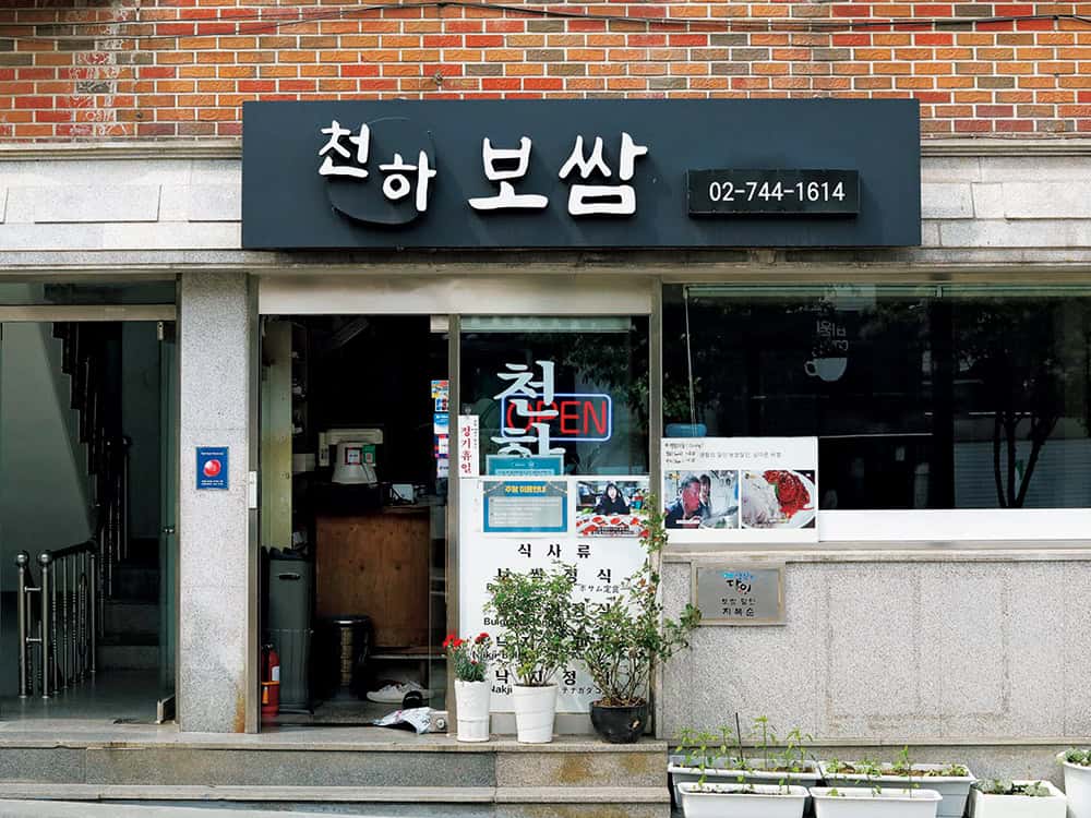 シルキーな茹で上がりが絶品。どこか懐かしい素朴な食堂もいい。秘伝の技を駆使して臭みを取ってから茹で上げた豚は普通のポッサムと違って薄切りになっているのが特徴的。おかずも優しい味。世界遺産の昌徳宮近く。