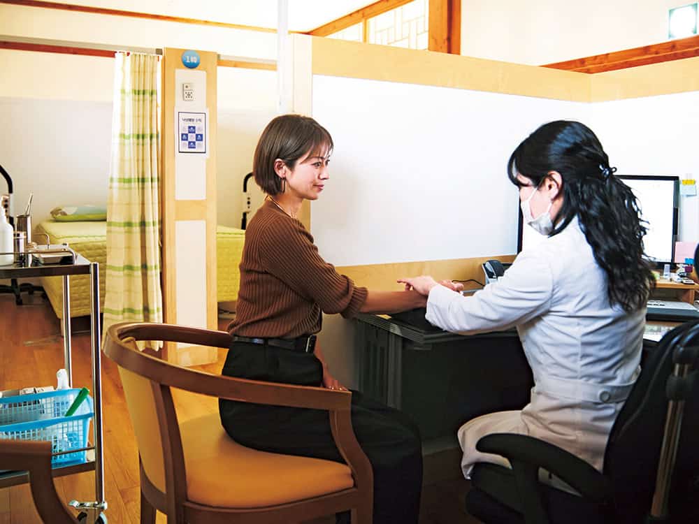 東医宝鑑の健康秘法である薬草足湯はW6,000。普済院では各W5,000で全身、手足のマッサージを受けられるウェルネスな観光スポット。