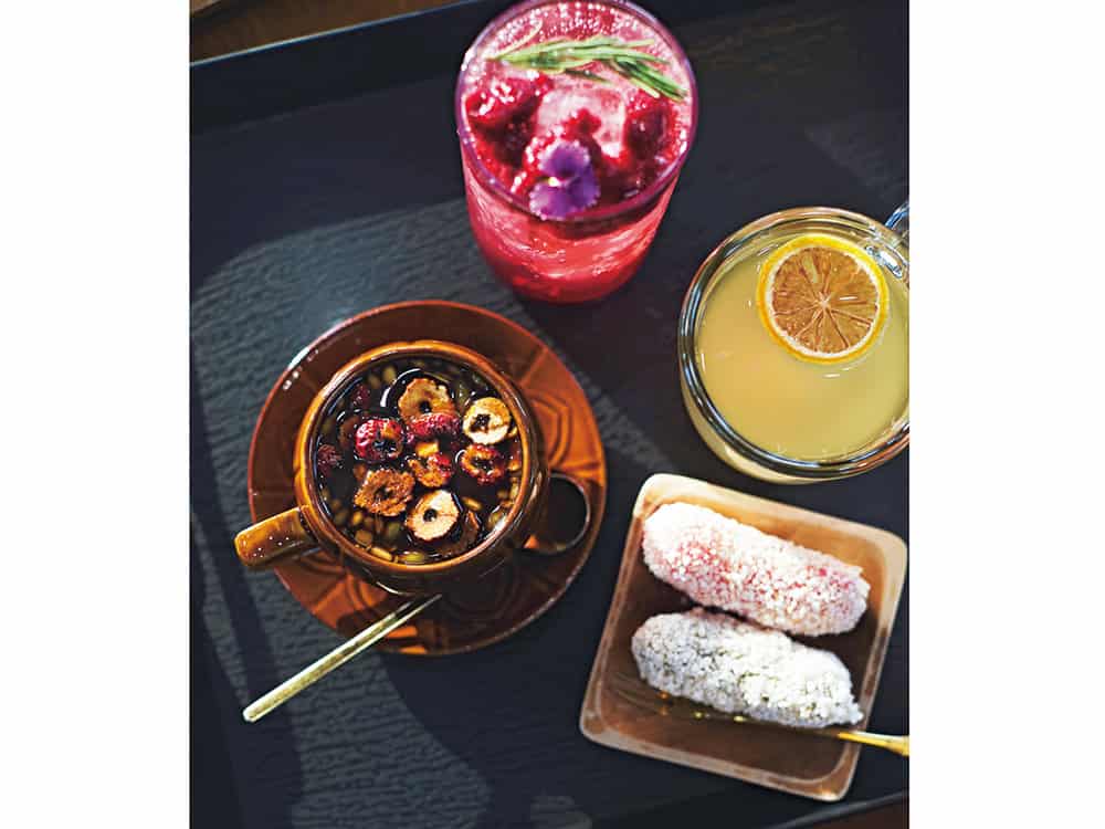 ソウル韓方振興センター別館にあるカフェ。韓方茶や韓国伝統菓子のほかにもレモネードやラズベリーソーダなどの通常のカフェメニューもあります。ランチもおいしい。