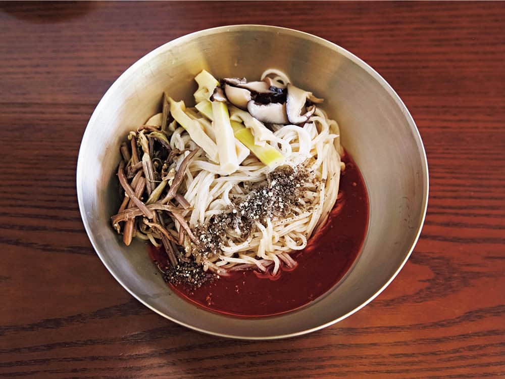 韓国で社会現象になった「白と黒のスプーン~料理階級戦争~」。出演店主の冷たいエゴマ麺が絶品! 滋味深い生エゴマ油麺はもちろんスターシェフのお味はどれも絶品。ミシュラン星付きのスターシェフ、キム・ドユンの手がける麺は添加物なしの全粒粉、緑豆、白豆で作った麺がベース。