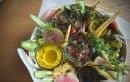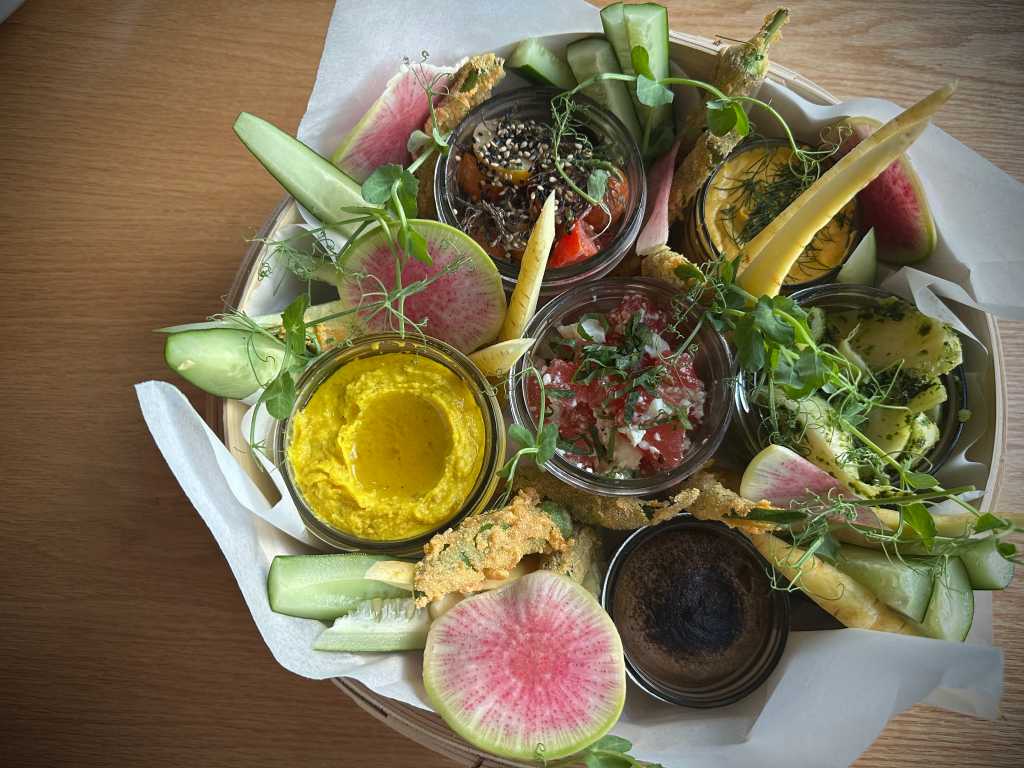 Summer Feature/$56 地元産の新鮮な野菜をふんだんに使ったシェアプレート。ブラックガーリックのナスディップや、ターメリックとウルのフムス、ウォーターメロン&フェタ、トマトポケなど彩り豊かな一品がずらり。ヘルシーなのに食べ応えもしっかりで、気分を盛り上げてくれる一皿です。