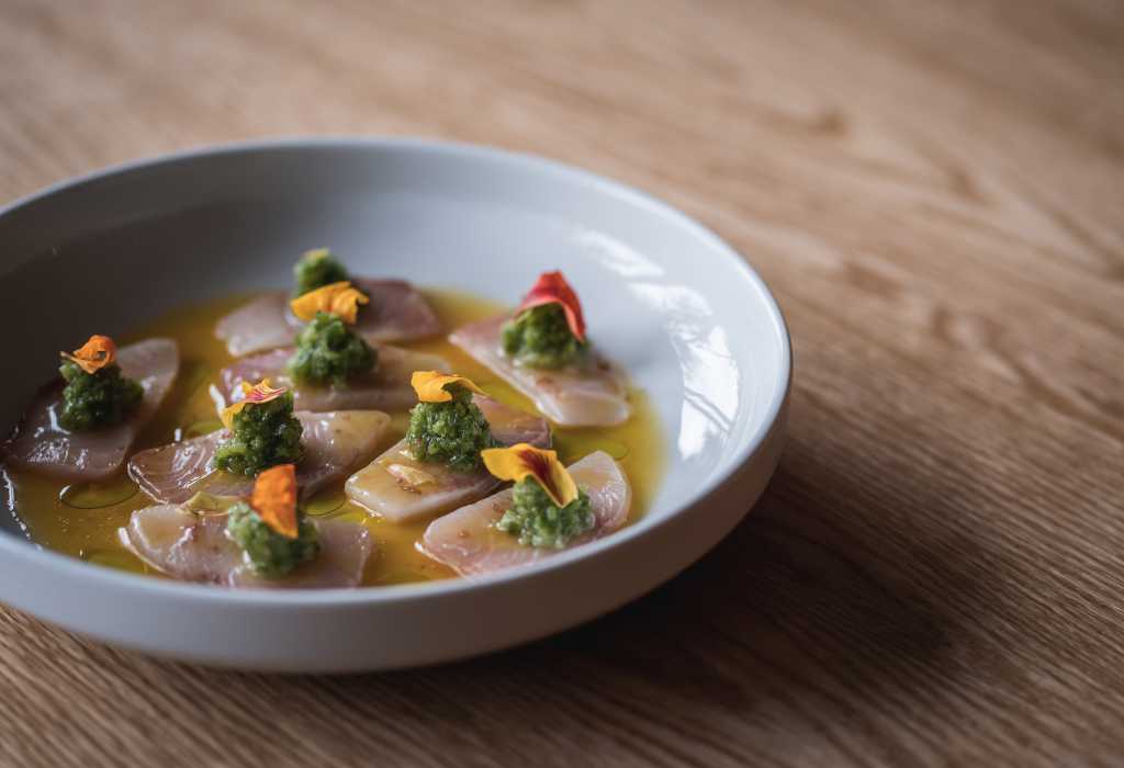 シンプルなのに心に残る味わい。脂ののったハマチを、柚子胡椒×ジンジャーの爽快ソースで軽やかに。