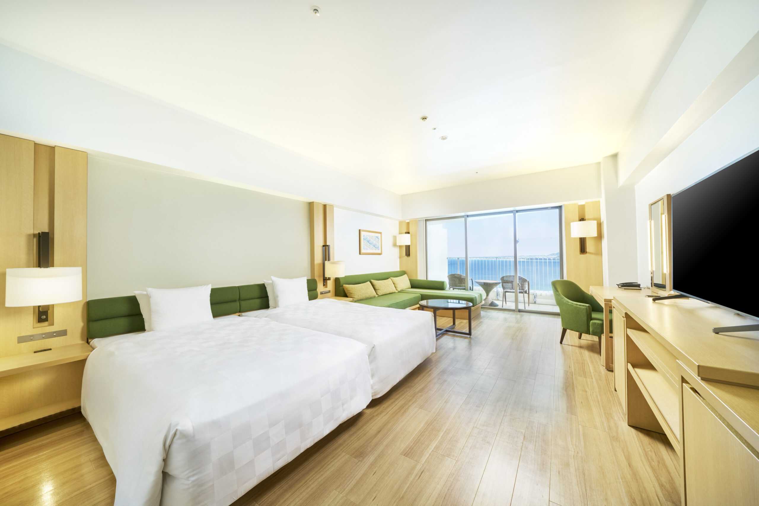 沖縄本島の北部、豊かな自然が残る本部町(もとぶちょう)にある「オリオンホテル モトブ リゾート&スパ」は、全室スイートルームのクラブウイングと全室オーシャンフロント&バルコニー付きのオーシャンウイングがある広大なリゾートホテル。