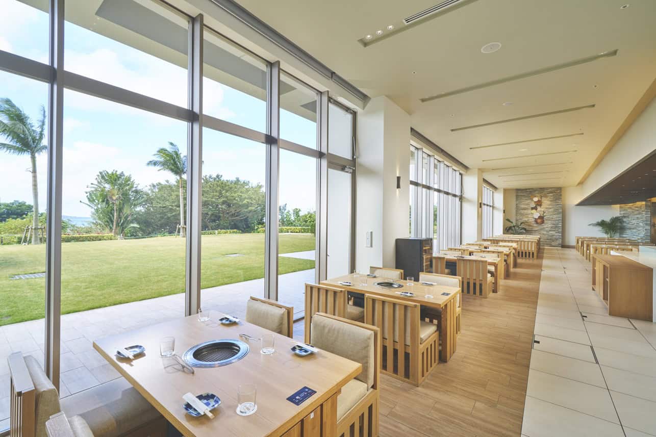 那覇空港からは車で100分ほど。空港リムジンバスやエアポートシャトルなど4つの路線のバスが停まるので、レンタカーがなくても楽々移動できるアクセスの良さも嬉しいポイントです。