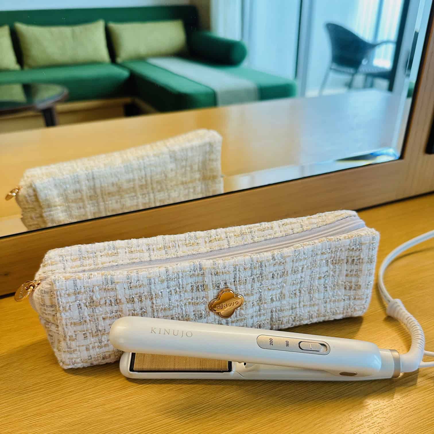 旅先にヘアアイロンを持っていきたくても、おうちで使っているものをトラベルバッグやスーツケースに入れるのは、かさばって重い・・・と思う方も多いはず。こちらのミニアイロンは、本体がたった約98gなので、軽くて持ち運びやすいのが嬉しいポイント。軽い力で挟めるからスタイリングしやすく、コンパクトだけど欲しい機能がギュッとつまっていて、とっても便利です。そして、摩擦が少ないシルクプレートがついているので、スタイリングするだけで髪がしっとりツヤツヤ♡ 小回りの利く設計で思いのままに理想のスタイリングが叶います。