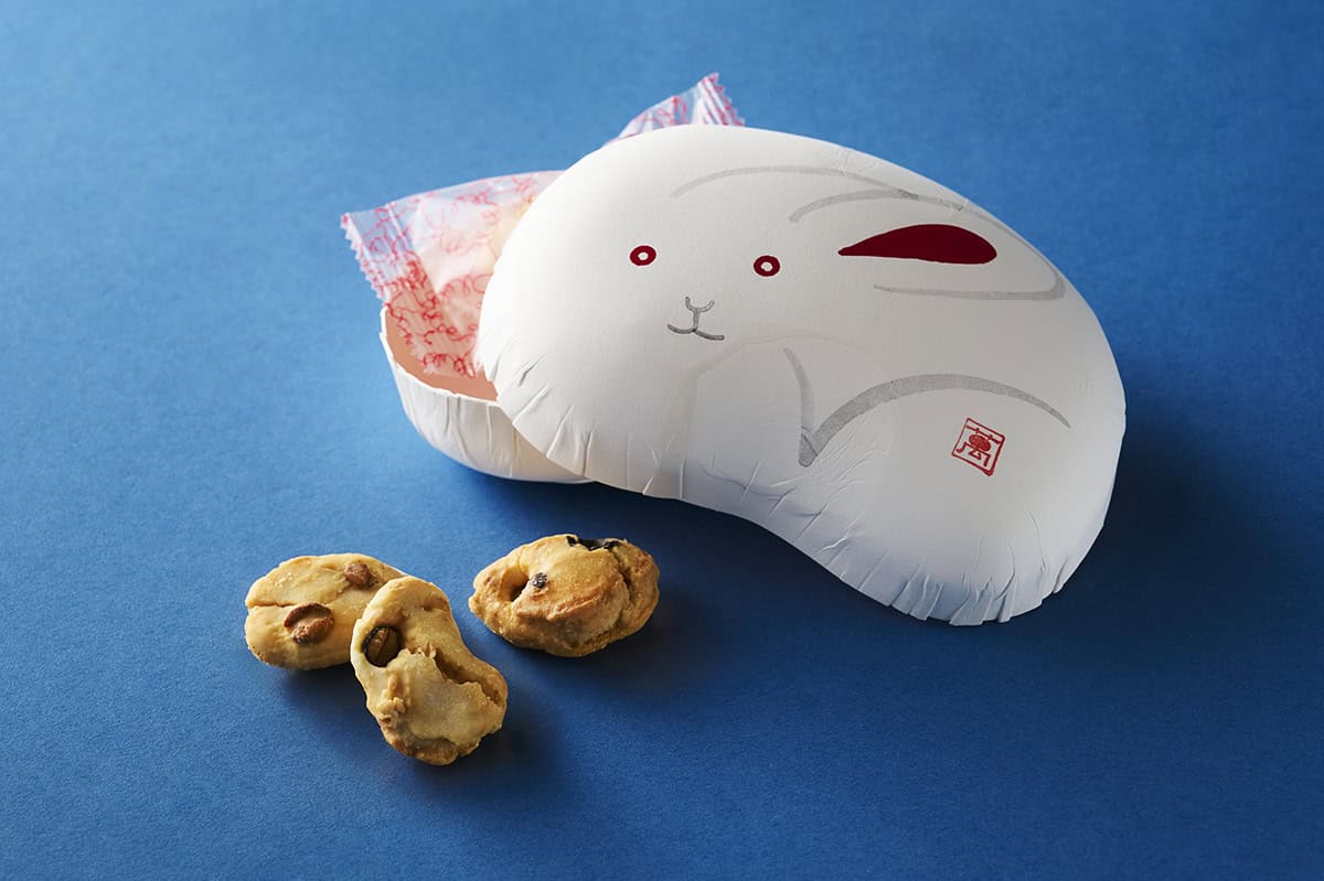 まめや金澤萬久「まめやのおかきなしょこら 「しみみ」・黄な粉チョコ(豆箱入り) 絵柄:うさぎ」(お取り寄せはこちら)