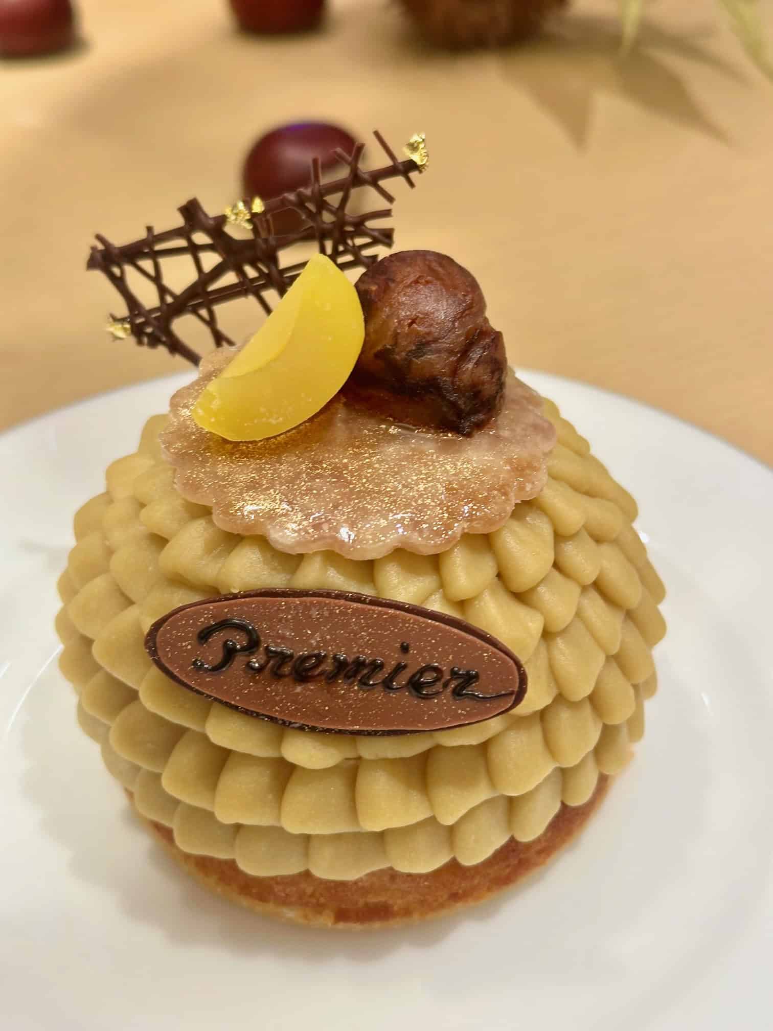 第一弾は、芳醇なモンブラン「Premier マロン Robe de Reine -女王のドレスー」を展開。国産和栗と和素材のほうじ茶を合わせたテイストで、普通のモンブランとは一線を画す美味しさ。クリームやタルト、パイ生地には厳選した平飼い卵を用い、豊かな風味と深いコクで濃厚な栗の味わいを引き立てています。毎朝丁寧に手絞りするマロンペーストは、ホクホクとした甘味と強い香りから“栗の女王”と呼ばれる熊本県産の希少な栗「美玖里(みくり)」を使用。その名にちなんだ姿にするため、ドレスを思わせる気品あるデザインに仕上げています。