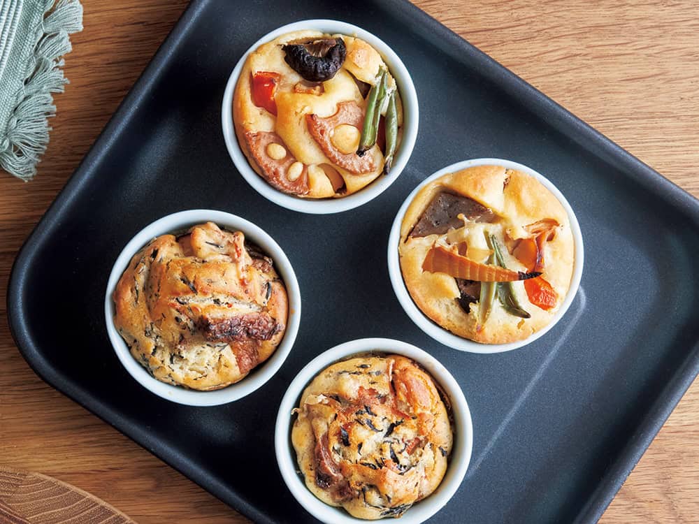 毎日お決まりパターンになりがちな、子どもご飯。バーンと出したら「え? なにこれ?」って嬉しそうな声が上がるメニューを考案しました(笑)。うちの子どもたちは私が料理を作るとき、〝おもしろそうだからやる!〟と言ってお手伝いをしてくれます。「美味しい」や「楽しい」は、子どもとの最上のコミュニケーションを生んでくれます。中でもパンや小麦粉で作るメニューは手軽で簡単に作れるのでおすすめです。