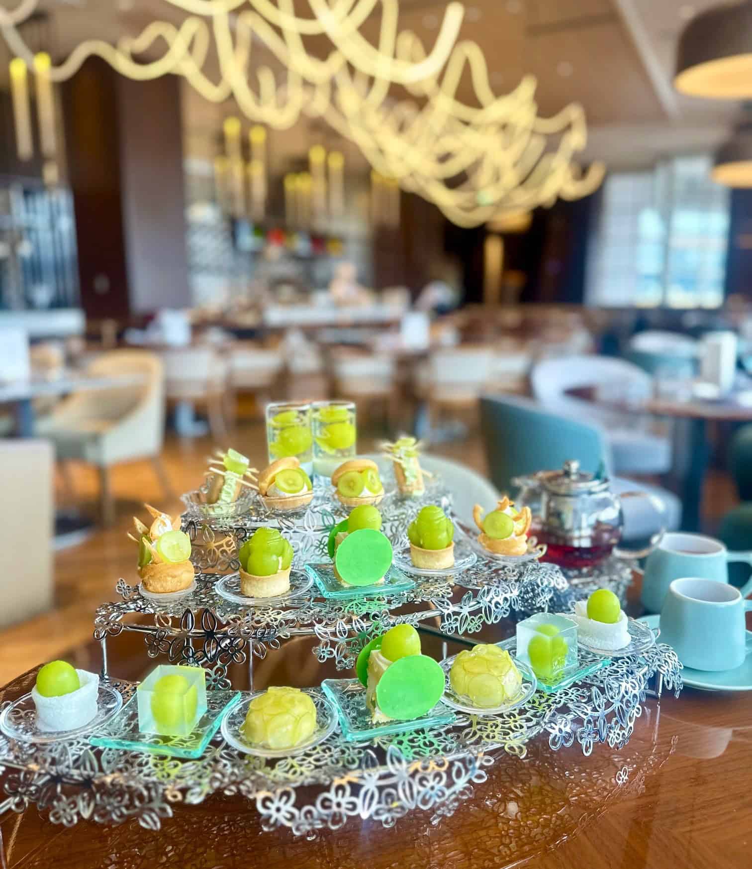 ヒルトン東京お台場の 「グリロジー バー&グリル」に、産地直送の山梨県産のシャインマスカットを贅沢に使用した「シャインマスカットアフタヌーンティー」が期間限定で登場しました。