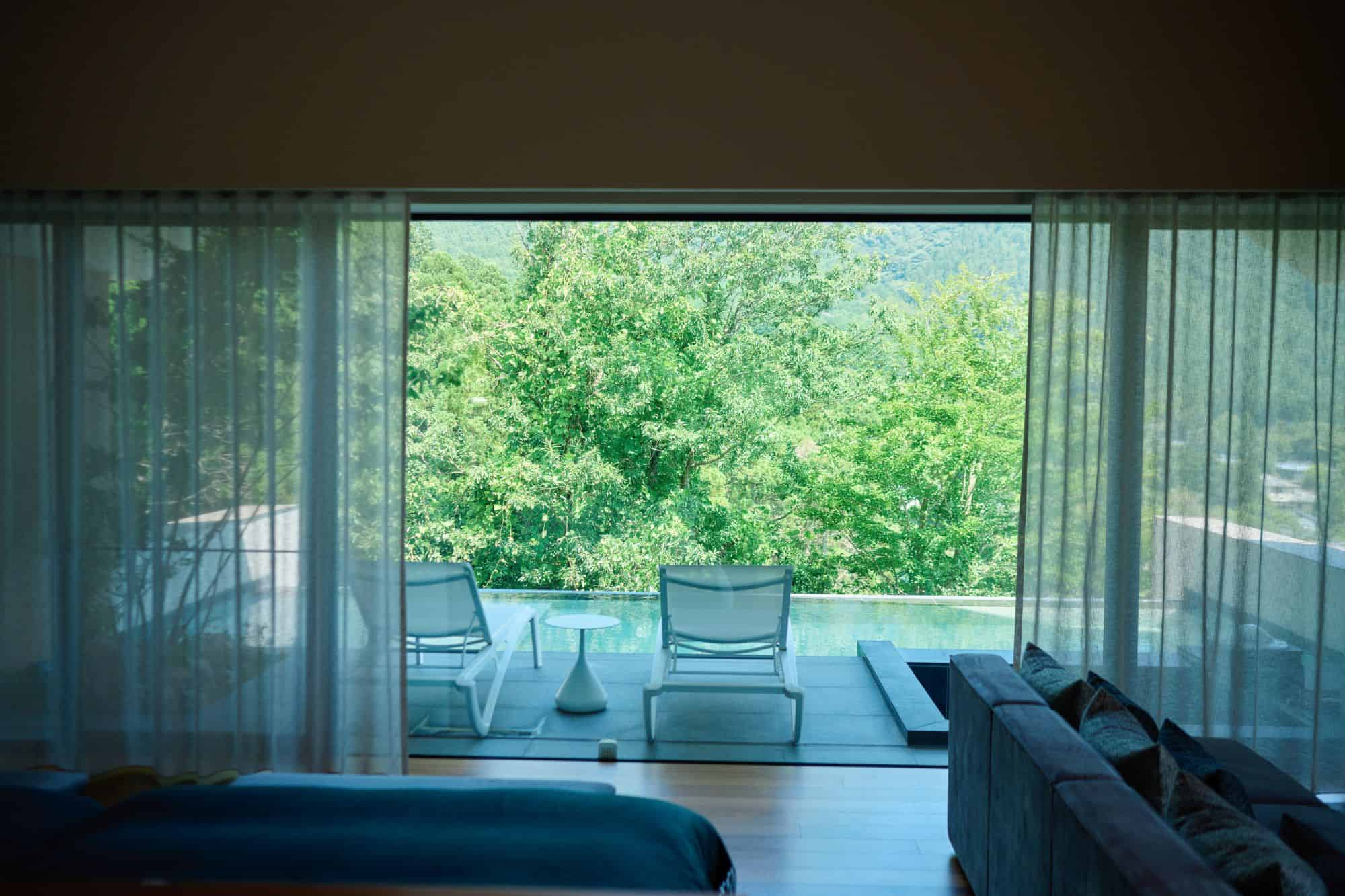 湯布院にあるオーベルジュ「ENOWA」。その広大な敷地は、約44,000平米。外観からは想像がつかないほど緑あふれる敷地が広がり、そこではゆったりとした客室、温泉、プール、サウナ、エステ、美しいガーデン、食事、細やかなサービス…で心身ともにじっくりと癒してくれます。湯布院の景色と山を眺めながらゆったりと過ごせる部屋はいずれも美しく機能的。心地よい時間が約束されています。
