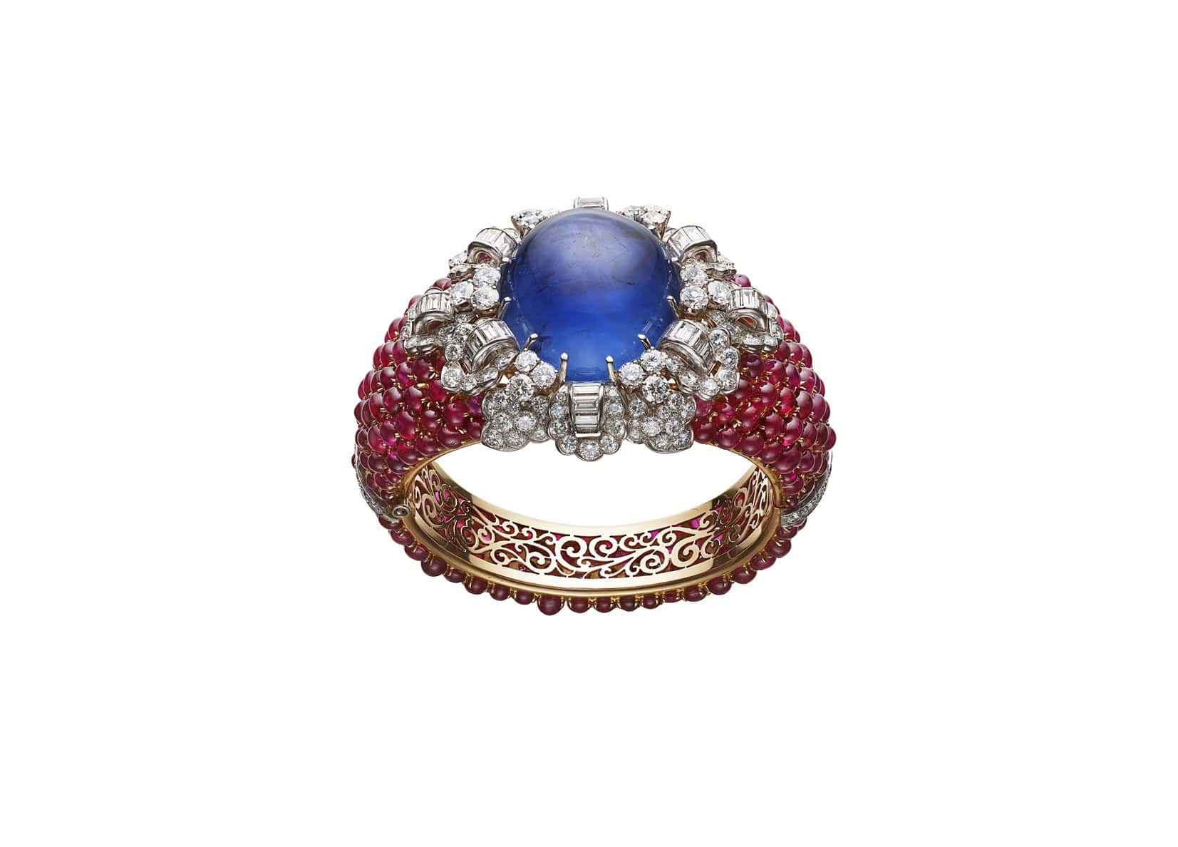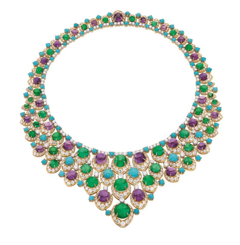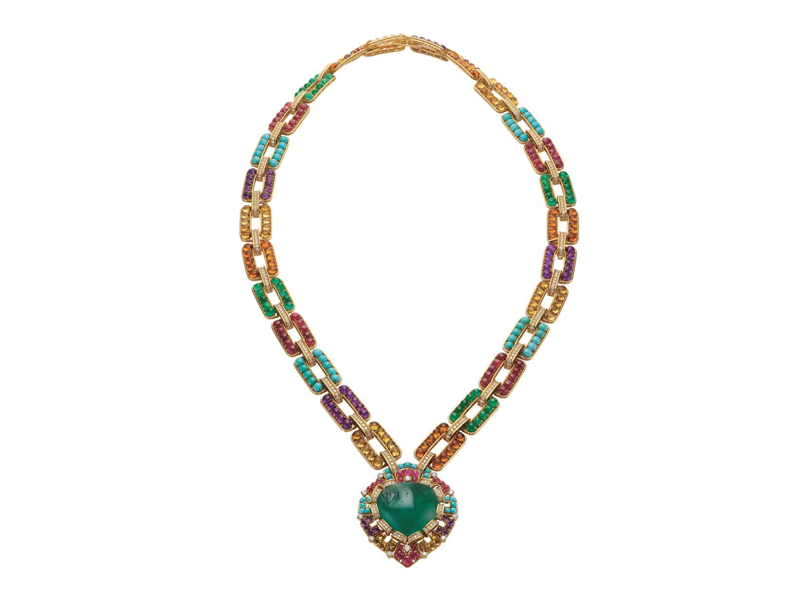 カレイドスとは、「美しい(カロス)」と「形態(エイドス)」を意味するギリシャ語に由来しており、“ダイナミックに変化し続けるブルガリの色彩世界を巡る旅”を展開。ブランドの歴史を物語るブルガリ・ヘリテージ・コレクションと貴重な個人コレクションから選び抜かれた約350点もの傑作ジュエリーが一堂に会しています。