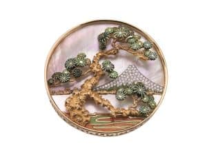 会場デザインはブルガリと、日本の建築家ユニット「SANAA」、イタリアのデザインユニット「フォルマファンタズマ」が協働して手がけたもの。イタリアと日本、両国のクラフツマンシップを象徴する古代ローマ神殿を模した《「テンプル」ペーパーウェイト》や《「富士山」ブローチ》を展示するほか、現代アーティストのララ・ファヴァレット、森万里子、中山晃子が参加した作品も展示しています。貴重なアーカイブが堪能できるまたとない機会をお見逃しなく。