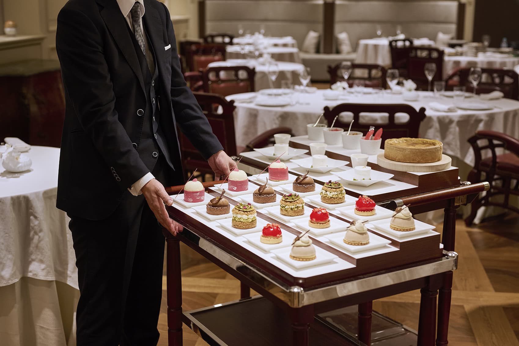 今回のリニューアルを機に、まるで宝石のように美しいデザートの数々が並ぶ「シャリオデセール」がディナータイムに新登場!世界チャンピオンの経歴を持つ、リヨン本店のシェフパティシエ ブノワ・シャルヴェ氏が手がけたポール・ボキューズ伝統のデザートワゴンで、芸術作品のように美しいデセールコレクションの数々を本国同様に楽しめます。