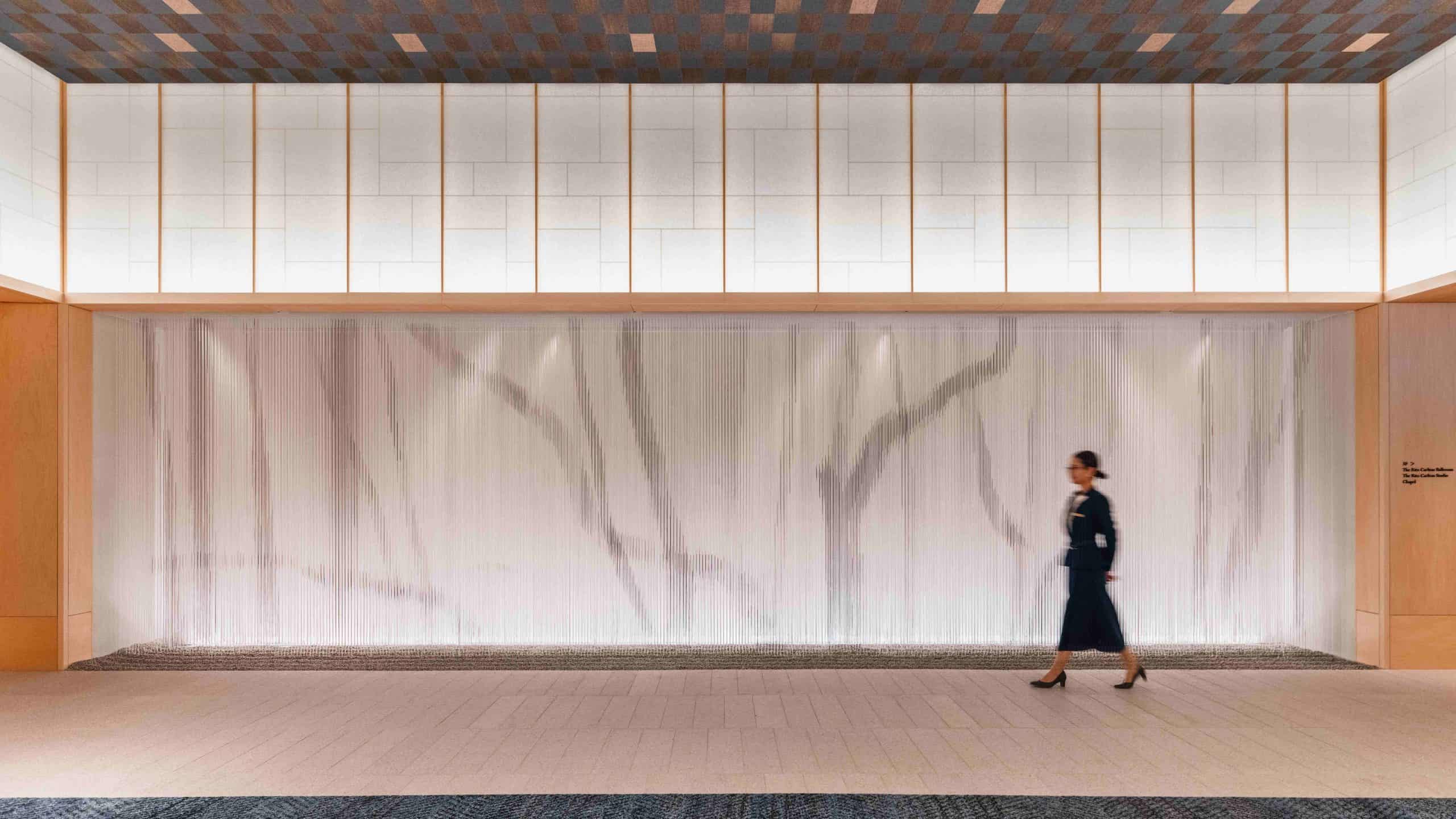 ホテルのデザイナーであるLAYAN Architects + Designersが福岡で最も魅了された博多の伝統工芸「織り物」をコンセプトに、縦糸と横糸が交わるように、「ホテル全体」、「福岡の文化と人とホテル」、「現在・過去・未来」を繋ぐという意味が込められているそう。