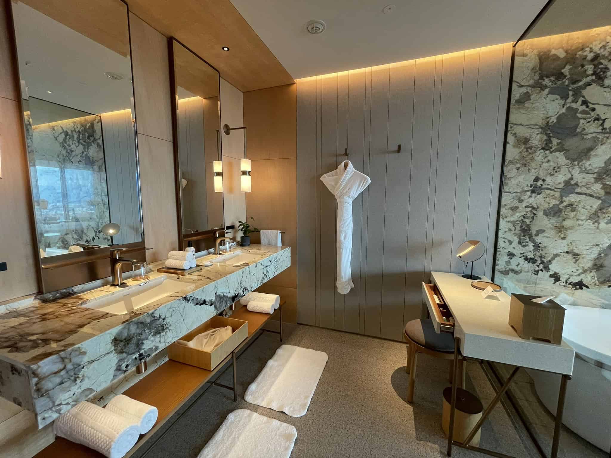 ずっと客室に滞在したくなるような心地よい空間。日が沈む時間帯にバスタブにゆっくり浸かりながら、空の色の変化を眺めるのも極上の時間です。
